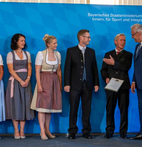Zusammen mit seinen Eltern Elfriede und Michael sen. sowie seiner Ehefrau Margit und der Schwester Elisabeth Wittmann war der Geschäftsführer und Kommandant Michael Mayer nach München gereist, um die Ehrung als „Ehrenamtsfreundlicher Betrieb“ in Empfang zu nehmen. In der Laudatio würdigte Joachim Herrmann die Familie Mayer für die „Freistellung zu Einsätzen, Übungen und Ausbildungen sowie für Fortbildungen an den Staatlichen Feuerwehrschulen“. Darüber hinaus findet die langjährige Unterstützung der Jugendfeuerwehr Ruhpolding sowie die Unterstützung bei Einsätzen mit Fahrzeugen und Material aus dem Betrieb eine besondere Beachtung.