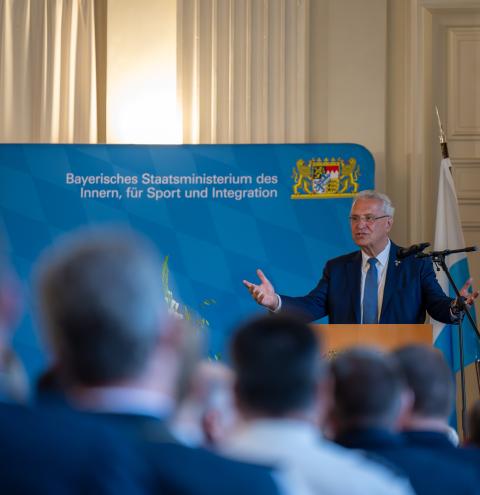 Zu den ersten Gratulanten zählten Kreisbrandrat Christof Grundner, der neben der stellvertretenden Landrätin Resi Schmidhuber und Bürgermeister Justus Pfeifer extra nach München gereist war. Neben dem Betrieb aus dem Landkreis Traunstein wurde die Auszeichnung an Arbeitgeber aus Altomünster, Eggenfelden, Kösching, Memmingen, Moosinning, München, Rosenheim und Stephanskirchen verliehen. „Schutz und Hilfe für die Bevölkerung zu jeder Tages- und Nachtzeit kann es nur geben, wenn hinter den vielen ehrenamtlichen Helfern Arbeitgeber stehen, die ihren Mitarbeiterinnen und Mitarbeitern trotz möglicher Auswirkungen auf den Betriebsablauf im Einsatz den Rücken freihalten“, würdigte der Bayerische Innenminister die neun Geehrten in seiner Ansprache. Hob