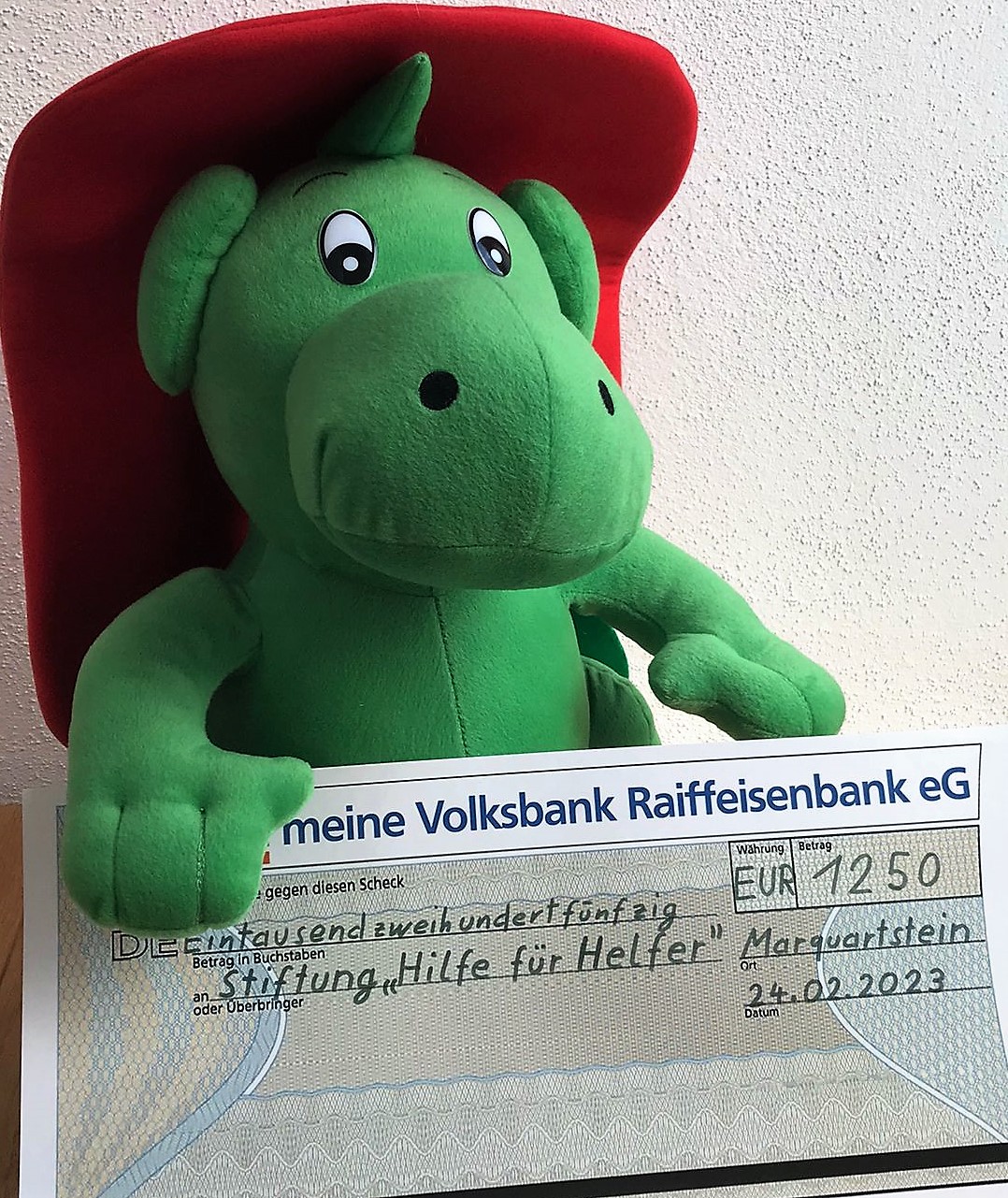 Ein großer Unterstützer des Sonderkontos ist die Aktion „Grisu hilft“. Wenn Feuerwehren bei Veranstaltungen das kleine Plüschmaskottchen Grisu sowie Malbücher, Schlüsselanhänger oder ähnliches anbieten, fließt mit dem Verkauf automatisch ein Teil des Erlöses in das Sonderkonto „Hilfe für Helfer“. Rund 55.000 Euro sind auf diesem Weg in den letzten Jahren an Spenden in das Sonderkonto des Landesfeuerwehrverbandes Bayern geflossen. Hob