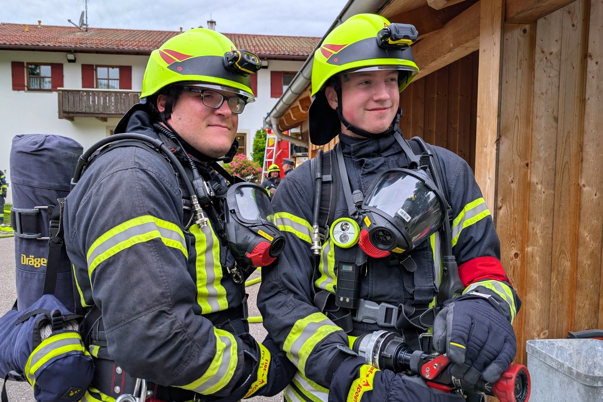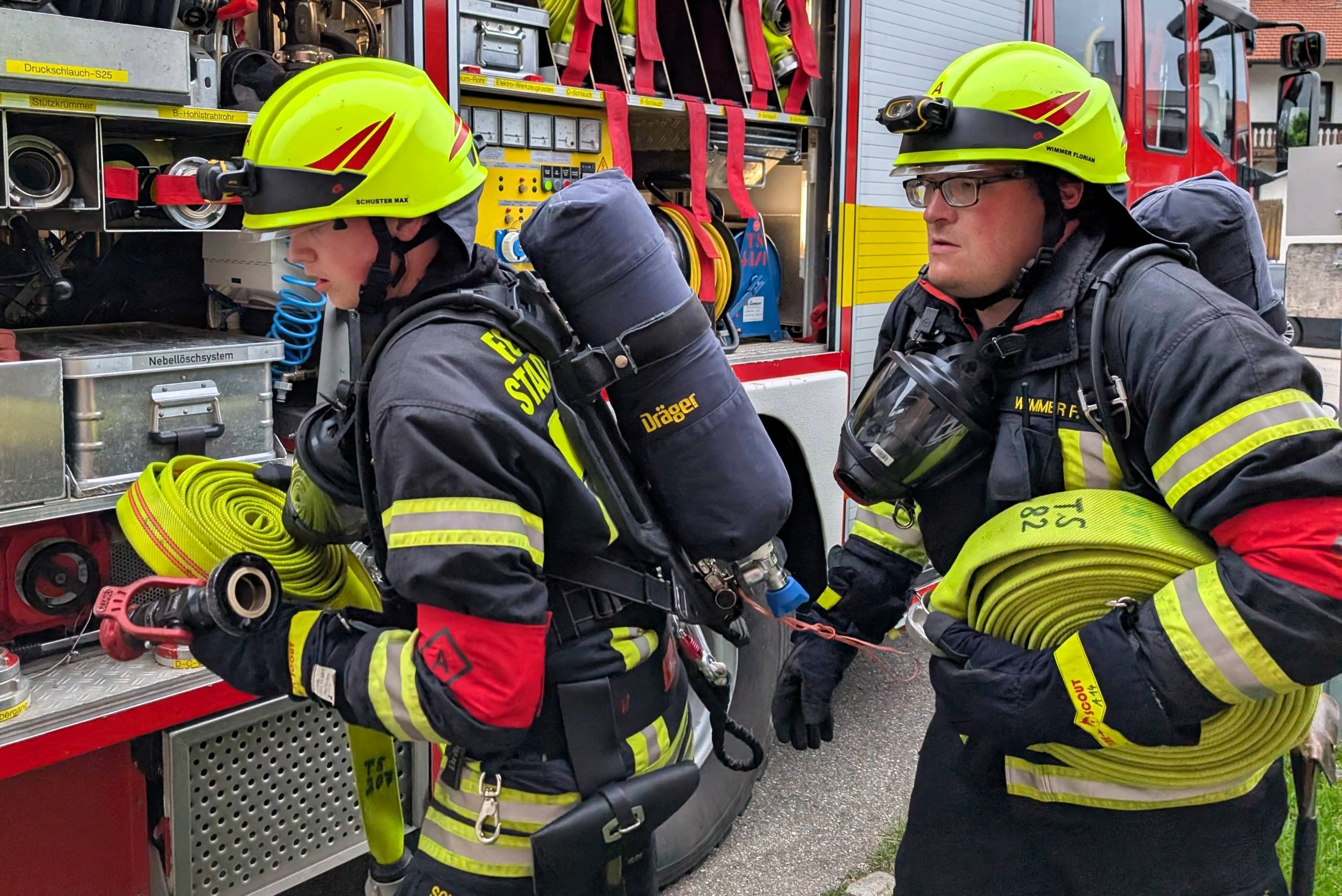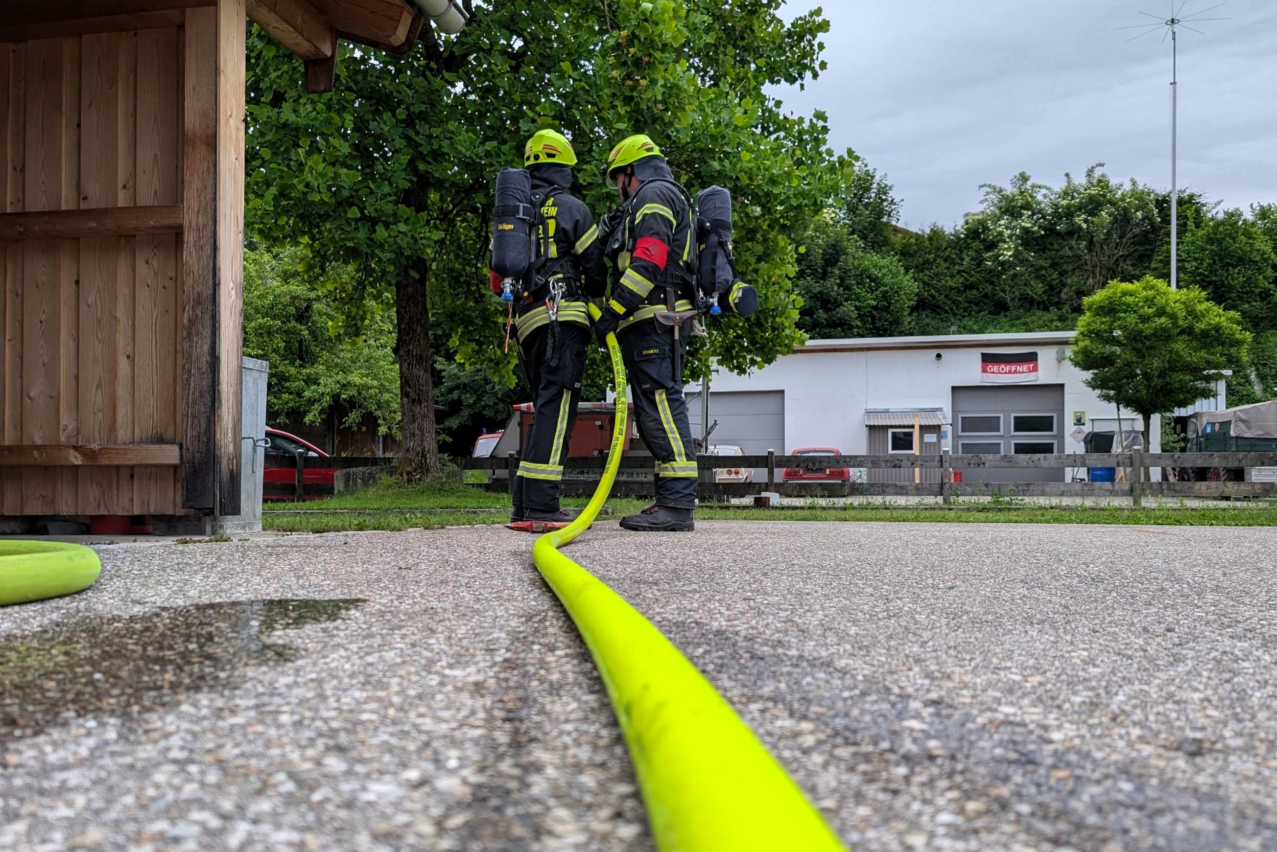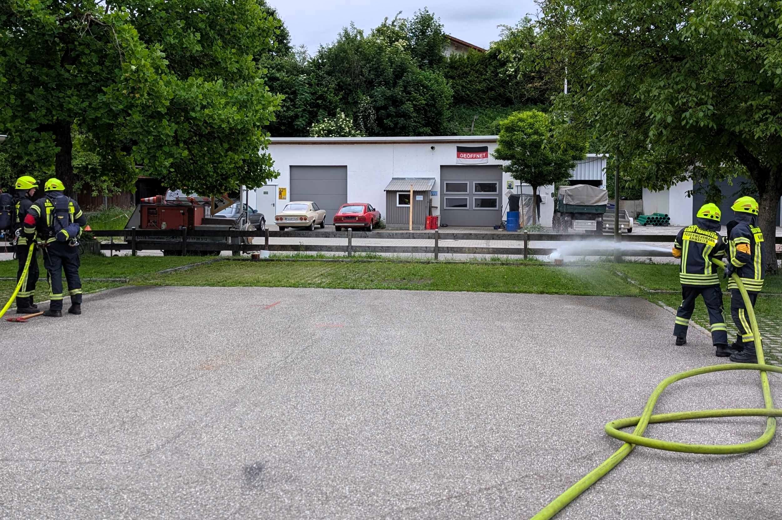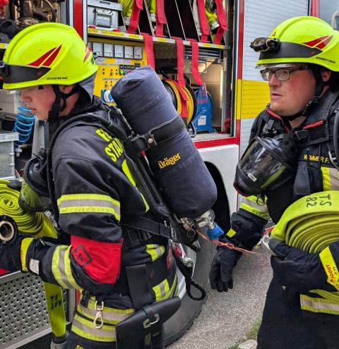 Traunstein, Kammer. Die Aktiven der Feuerwehr hatten bei der Manöverkritik durch die Schiedsrichter des Kreisfeuerwehrverbandes Traunstein allen Grund zur Freude. „Wir gratulieren zur hervorragend bestandenen Leistungsprüfung“, so das Abschlussfazit von Kreisbrandinspektor Martin Schupfner unmittelbar im Anschluss an die mehrteilige Prüfung des Leistungsabzeichens „Die Gruppe im Löscheinsatz“. Als Kernaufgabe mussten die Floriansjünger einen kompletten Löschaufbau samt Atemschutzeinsatz vorzeigen und einen angenommenen Zimmerbrand löschen.