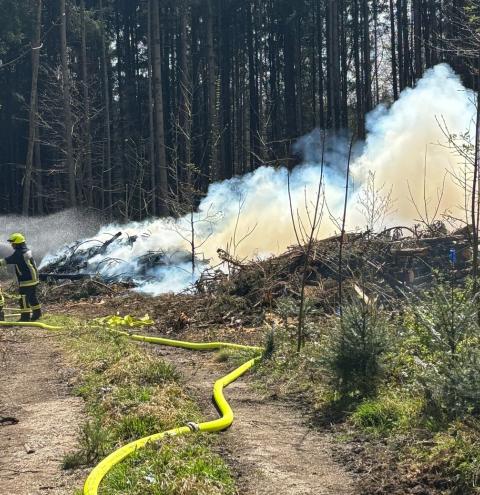 Kirchanschöring. Am Mittwochmittag (16. April) wurde die Feuerwehr Kirchanschöring gegen 12:45 Uhr durch die Integrierte Leitstelle Traunstein mit dem Einsatzstichwort „Brand – kleine Freifläche“ in ein Waldstück nahe den Ortsteil Greiner gerufen. Als die ersten Einsatzkräfte eintrafen, standen dort rund 50 Quadratmeter Vegetation und ein Holzhaufen in Flammen.