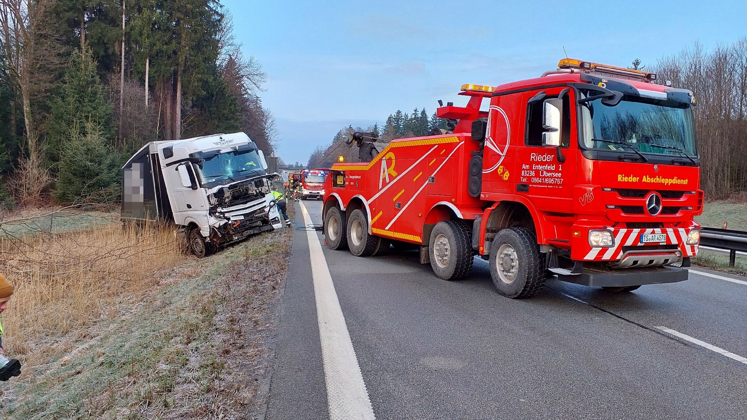 Am Mittwochmorgen kam ein 40-Tonner nach einem Ausweichmanöver von der Fahrbahn ab und erst nach rund 100 Metern im Gelände zum Stehen. Der Fahrer blieb unverletzt, es entstand jedoch erheblicher Sachschaden. Die Feuerwehren Grabenstätt und Übersee sicherten die Unfallstelle und unterstützten die Bergung. Währenddessen kam es zu Verkehrsbehinderungen bis zur Anschlussstelle Bernau.