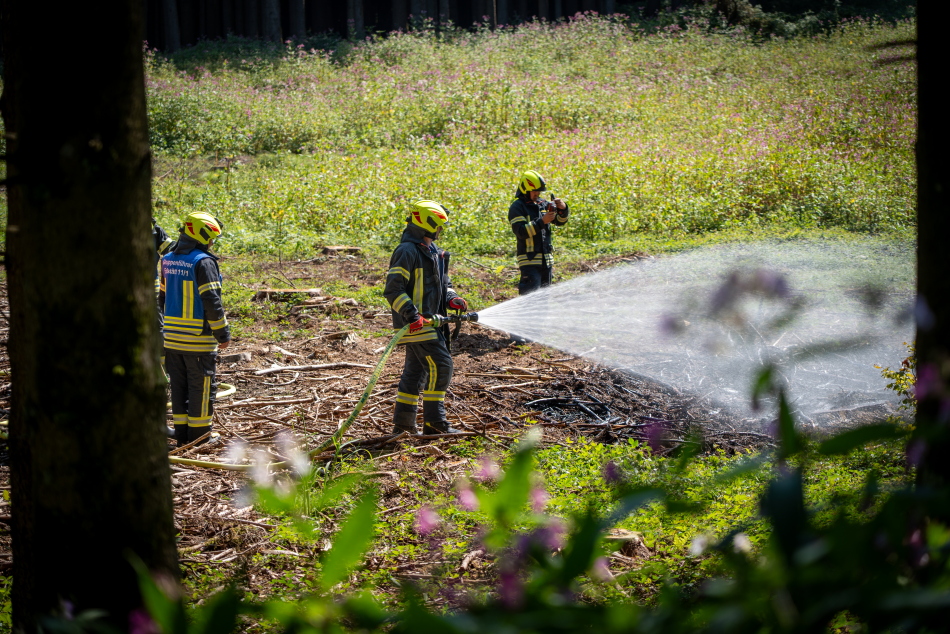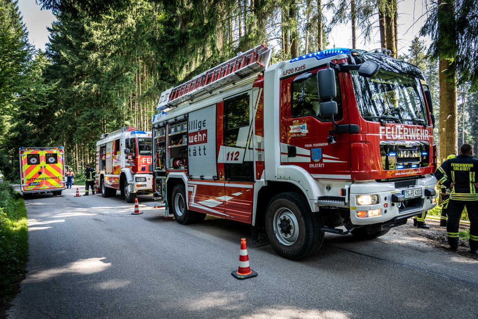 Eine aufmerksame Bürgerin rief die Feuerwehr, da sie in einem Waldstück zwischen Erlstätt und Innerlohen Flammen und eine Rauchsäule bemerkte. Die daraufhin alarmierte Feuerwehr Erlstätt rückte mit vier Fahrzeugen und circa 20 Floriansjüngern aus. Beim Eintreffen standen circa 20 Quadratmeter in einer Lichtung in Flammen. Der Feuerwehr gelang es den Brand zügig abzulöschen und ein Ausbreiten der Flammen zu verhindern. Nachdem der Brand gelöscht war, kontrollierte man mit Hilfe einer Wärmebildkamera den Brandherd auf Glutnester. Warum das Feuer ausbrach, konnte man noch nicht sagen. Verletzt wurde niemand. Der Rettungsdienst war mit einem Rettungswagen vor Ort. Die Polizei Traunstein nahm den Vorfall auf.