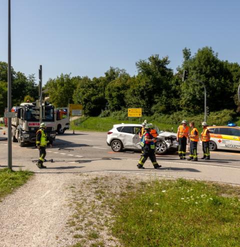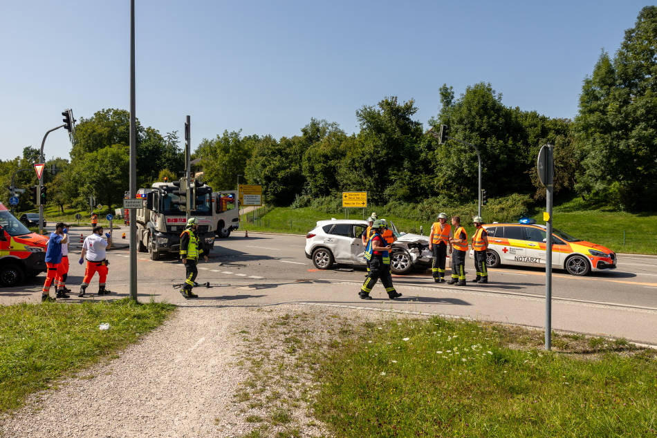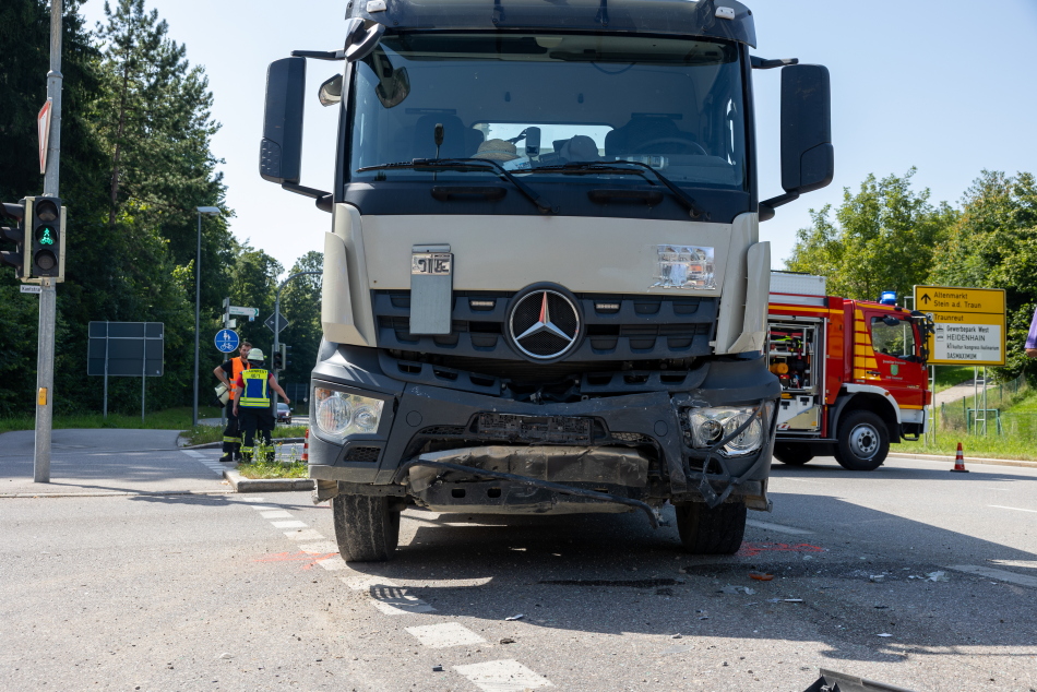 Ein Verkehrsunfall mit glücklicherweise nur leicht verletzten Personen ereignete sich auf der Staatsstraße 2104 an der Abzweigung zur Kantstraße in Richtung Traunreut. Nach ersten Erkenntnissen der Polizei wollte eine Autofahrerin, die mit zwei Kindern auf dem Rücksitz aus Richtung Waging unterwegs war, nach links in die Kantstraße abbiegen. Dabei übersah sie einen entgegenkommenden Lastwagen, der in Richtung Waging fuhr. Der LKW-Fahrer konnte einen Zusammenstoß nicht mehr verhindern. Durch den heftigen Aufprall wurde der Mazda der Frau um die eigene Achse gedreht. Alle Insassen des PKW wurden bei dem Unfall leicht verletzt. Die Fahrerin musste zur weiteren medizinischen Versorgung mit einem Rettungswagen ins Krankenhaus gebracht werden. Die beiden Kinder sowie der LKW-Fahrer blieben körperlich weitgehend unversehrt und mussten nicht transportiert werden. Die Feuerwehr Traunreut war mit 30 Einsatzkräften und sechs Fahrzeugen im Einsatz, um die Unfallstelle abzusichern und auslaufende Betriebsstoffe zu beseitigen. Das Bayerische Rote Kreuz war mit zwei Rettungswagen, einem Krankentransportwagen, einem Notarzteinsatzfahrzeug sowie dem Einsatzleiter Rettungsdienst vor Ort. Die Polizei Traunreut übernahm mit mehreren Streifen die Unfallaufnahme vor Ort. Der Mazda der Unfallverursacherin erlitt einen Totalschaden und musste abgeschleppt werden. Der beteiligte LKW blieb fahrbereit und konnte aus eigener Kraft zur Firma zurückkehren.