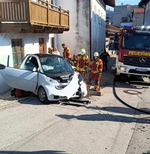 Tittmoning. Am Sonntagnachmittag (22. März) wurde die Feuerwehr Tittmoning um 14:50 Uhr an den Gewerbeberg alarmiert. Vor Ort war ein Smart gegen die Ecke einer Garage geprallt. Eine Person wurde von der Feuerwehr bis zum Eintreffen des Rettungsdienstes medizinisch betreut. Darüber hinaus sicherten die Floriansjünger das Fahrzeug gegen Wegrollen und kümmerten sich um das Abbinden der ausgelaufenen Betriebsstoffe. Das Fahrzeug war nicht mehr fahrbereit und musste abgeschleppt werden.