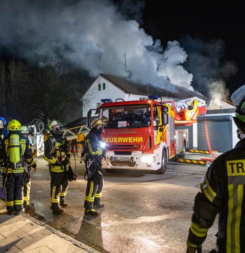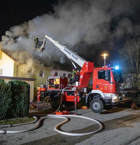 Die Feuerwehr Traunreut wurde zusammen mit den Feuerwehren Altenmarkt, Matzing, Palling, Pierling, Stein, Traunwalchen und Trostberg mit dem Einsatzstichwort „B4 – ausgedehnter Gebäudebrand“ in die Johann-Hinrich-Wichern-Straße alarmiert. Beim Eintreffen der Einsatzkräfte schlugen in einem Bereich eines Doppelhauses meterhohe Flammen aus dem Gebäude. Zunächst galt eine Bewohnerin als vermisst, was einen umfangreichen Einsatz von Atemschutzgeräteträgern zur Menschenrettung auslöste. Der Sachschaden liegt nach einer ersten Einschätzung im niedrigen sechsstelligen Bereich. Das Wohnhaus ist derzeit nicht bewohnbar. Die Ursache des Brandes wird nun von Beamten der Kriminalpolizei ermittelt. Ein Feuerwehrmann wurde bei den Löscharbeiten leicht verletzt. Nach rund zwei Stunden konnte die Feuerwehr der Leitstelle Traunstein „Feuer unter Kontrolle“ melden. Anschließend waren umfangreiche Nachlöscharbeiten erforderlich, die bis etwa 2 Uhr andauerten.