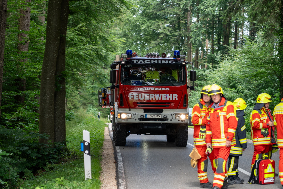 Auf der TS 26 kam es zwischen Taching am See und Palling auf Höhe Weitgassing zu einem schweren Verkehrsunfall. Ein 75-jähriger Fahrzeugführer verlor aus bisher ungeklärter Ursache in einem Waldstück die Kontrolle über sein Auto und kam nach links von der Straße ab. In Folge prallte der PKW frontal gegen einen Baum. Bei dem Unfall erlitten der Fahrer und seine 69-jährige Beifahrerin Verletzungen. Über die Schwere der Verletzungen konnten vor Ort noch keine Angaben gemacht werden. Der Rettungsdienst war mit zwei Rettungswägen, einem Krankentransportwagen sowie einem Notarzteinsatzfahrzeug vor Ort. Zusätzlich waren die Feuerwehr Taching/See und Feuerwehr Tengling mit 4 Fahrzeugen und 35 Einsatzkräften im Einsatz, um die Unfallstelle abzusichern. Ebenfalls unterstützten sie den Rettungsdienst bei der Erstversorgung der Patienten. Die Polizei Laufen nahm den Unfall auf.