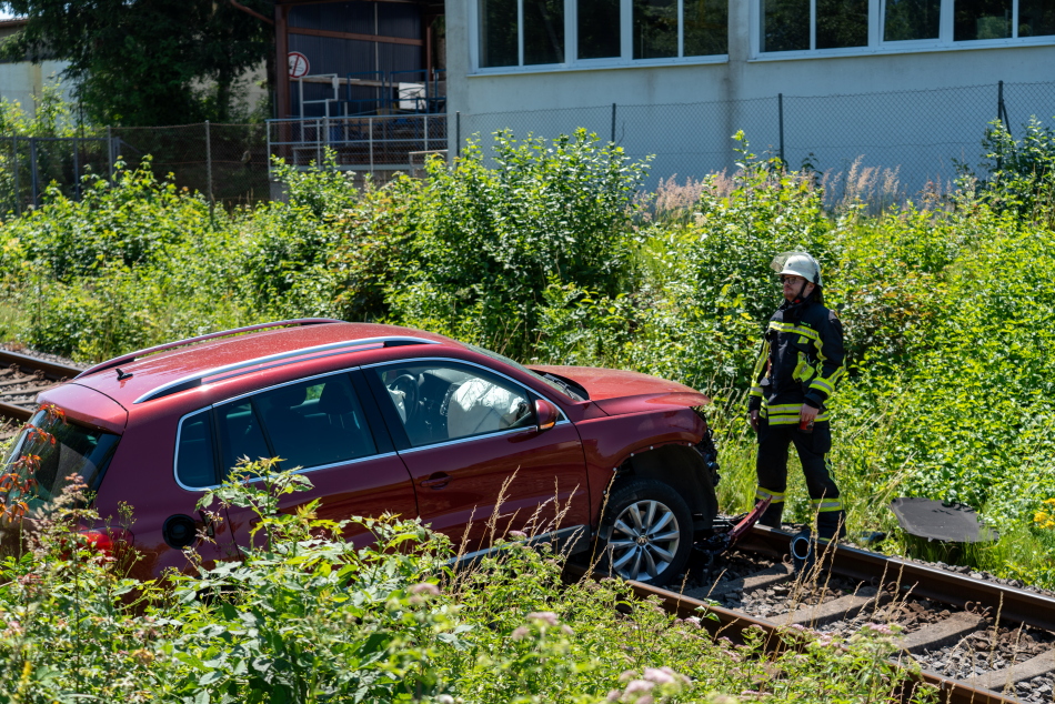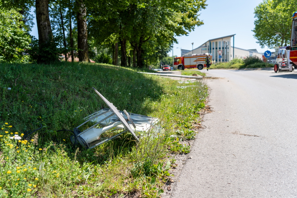 Auf der TS42 in Traunreut kam es zu einem Verkehrsunfall mit einem allein beteiligten PKW. Laut Angaben von vor Ort wollte eine 70-jährige Lenkerin mit ihrem Volkswagen vom dort befindlichen Kreisverkehr in Richtung St-Georgen fahren. Kurz nach der Ausfahrt des Kreisverkehrs verlor sie aufgrund überhöhter Geschwindigkeit die Kontrolle über ihr Fahrzeug und rammte daraufhin eine Straßenlaterne um. Durch den Aufprall wurde der PKW gegen die Verkehrsinsel geschleudert, rollte anschließend eine Böschung hinab und kam schließlich auf den Gleisen zum Stillstand. Die Fahrerin erlitt leichte Verletzungen und wurde durch den Rettungsdienst, welcher mit einem Rettungswagen, einem Krankentransportwagen und dem Einsatzleiter Rettungsdienst vor Ort war, in ein Klinikum gebracht. Die Feuerwehr Traunreut war mit fünf Fahrzeugen und 20 Einsatzkräften im Einsatz. Die Einsatzkräfte stellten den Brandschutz sicher und sperrten die TS 42 während der Unfallaufnahme komplett. Die Polizei Traunreut, sowie eine Streife der Bundespolizei nahmen den Unfall auf. Der Notfallmanager der Deutschen Bahn war ebenfalls vor Ort.