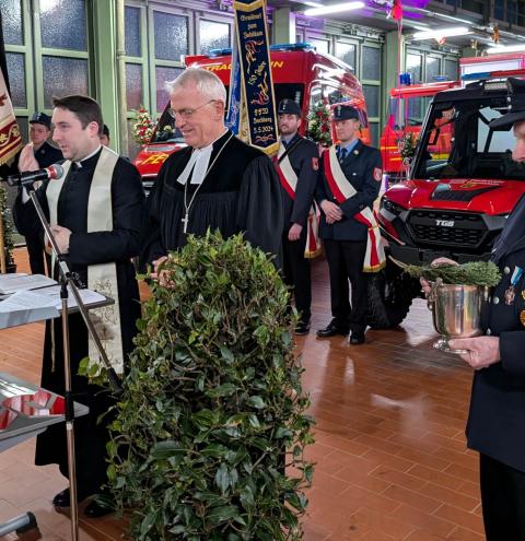 In seiner Ansprache betonte Pfarrer Peter Bertram, moderne Technik wirke sich zwar positiv auf die Motivation aus, „doch ohne die Mannschaft, die sie bedient, ist sie wertlos“. Mit Blick auf gesellschaftliche Entwicklungen mahnte er zu mehr gegenseitigem Respekt – insbesondere gegenüber Einsatzkräften, die im Dienst für den Nächsten immer wieder Kritik und Anfeindungen ausgesetzt seien.