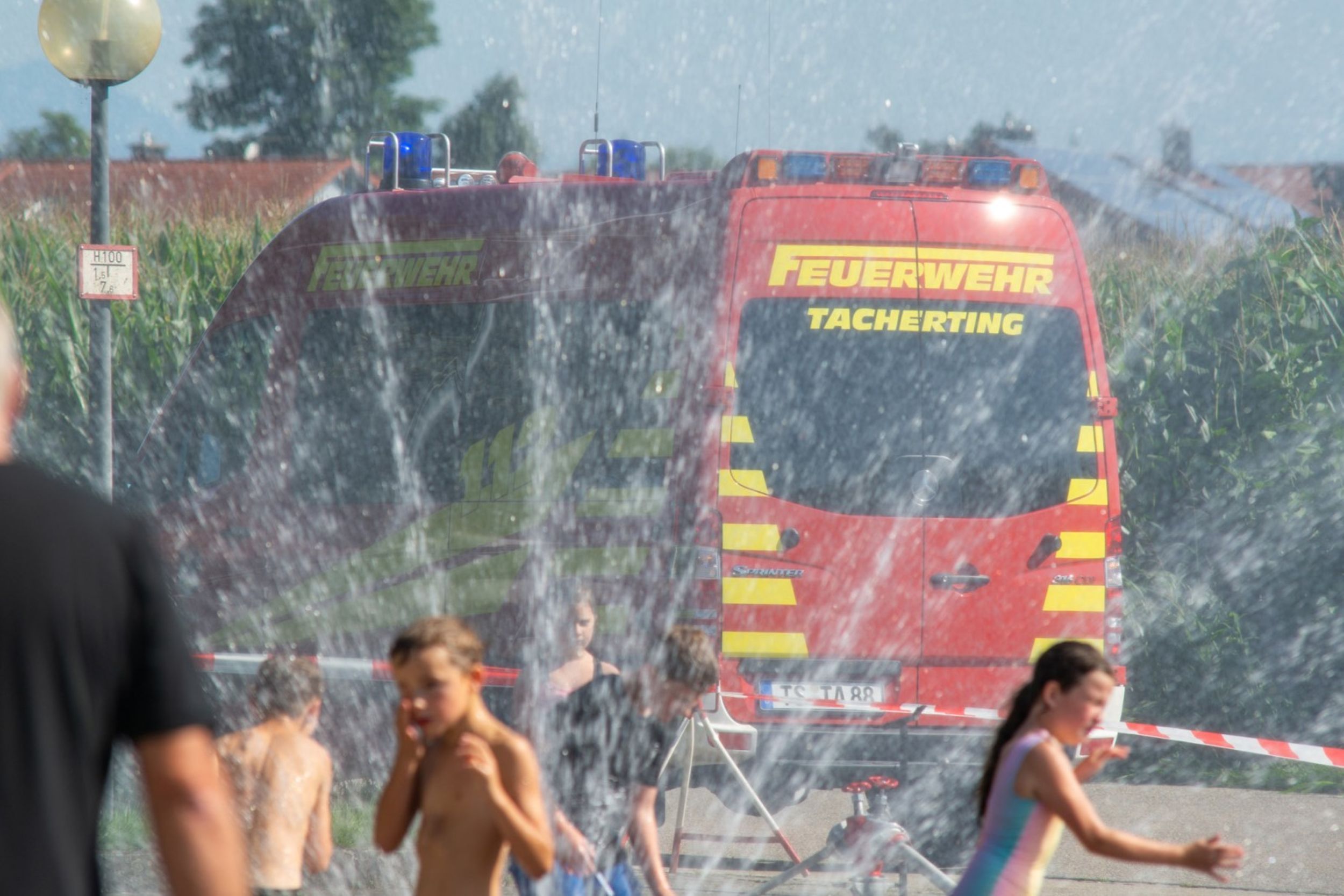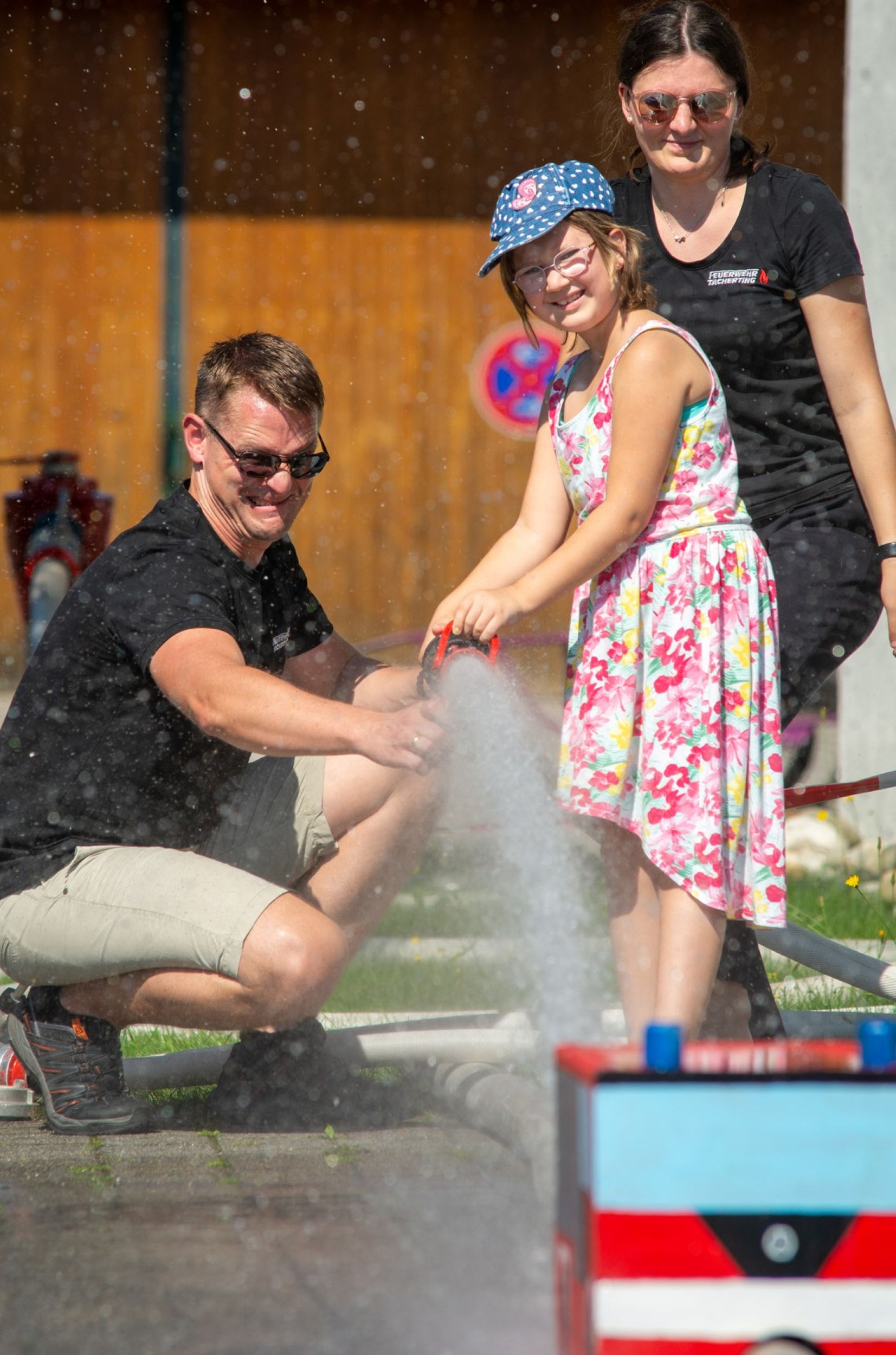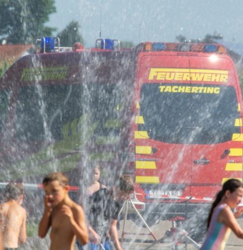 Den Abschluss und gleichzeitig Höhepunkt des Tages bildete die Rubrik „Wasserspiele“ in der sich die Kinder an mehreren Stationen am Strahlohr beweisen konnten oder die Kübelspritze in Betrieb nehmen durften. „Viele Kinder hatten gleich die Badesachen eingepackt“, informiert Rosanna Mörtl und ergänzt lachend, „die haben sie auch gebraucht, weil wirklich keiner unserer Gäste trockenen Fußes davongekommen ist“. Natürlich sorgten die Tachertinger Feuerwehrleute auch für Getränke und das spendierte Eis kam bei den sommerlichen Temperaturen ebenfalls bestens an.