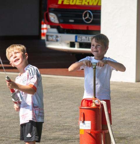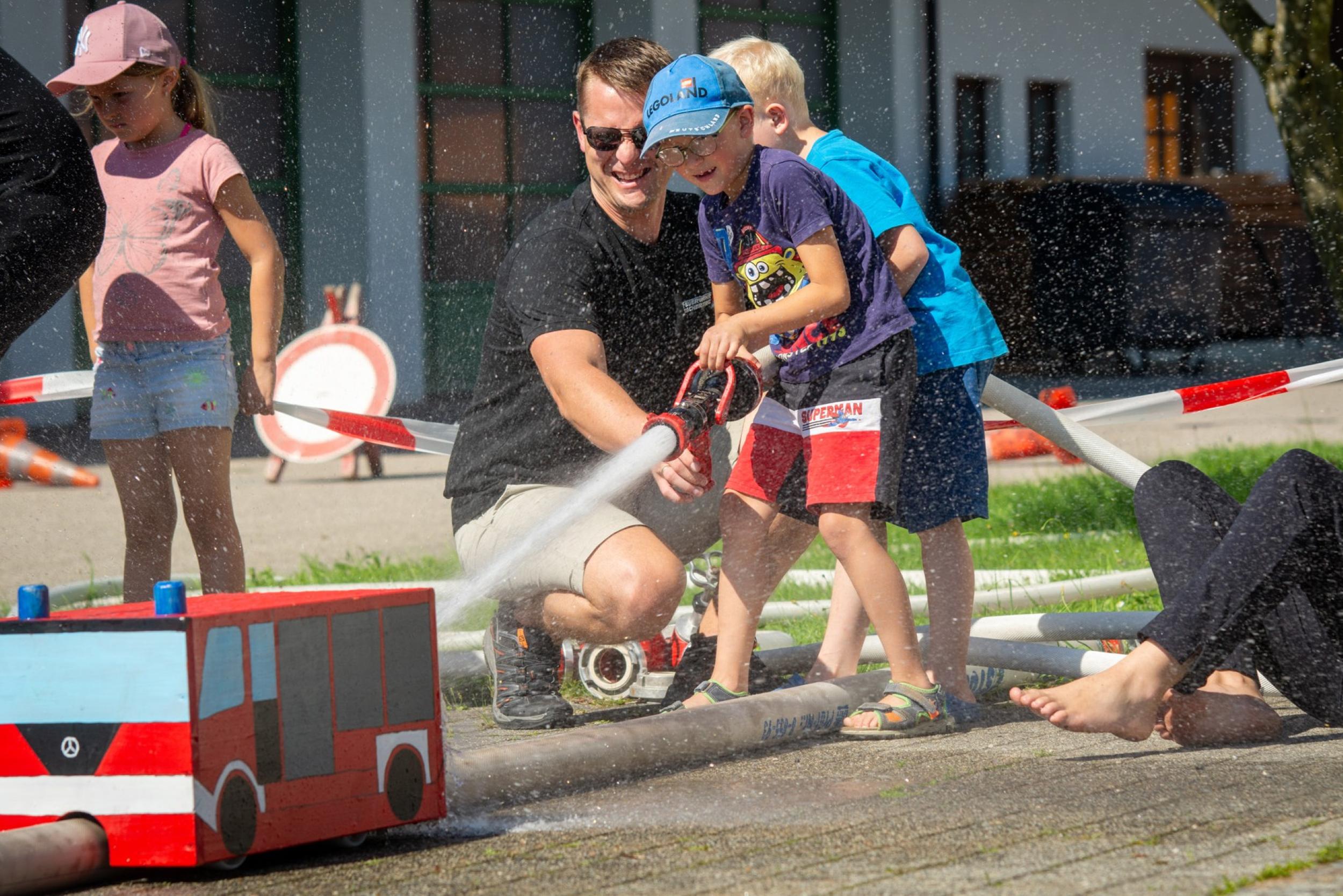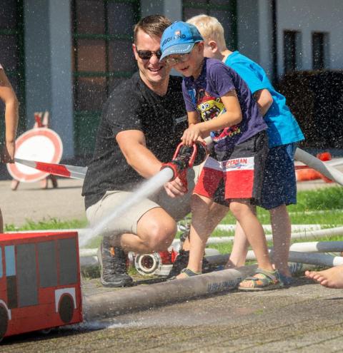 In diesem Jahr lag die Organisation des Feuerwehr-Angebots in den Händen von Feuerwehrfrau Rosanna Mörtl. Mit viel Herzblut und Kreativität plante sie gemeinsam mit zahlreichen weiteren fleißigen Feuerwehrleuten einen Nachmittag, der den Kindern lange in Erinnerung bleiben sollte. Das Organisationsteam legte viel Wert darauf, dass die Kinder selbst aktiv werden konnten und den Tag bei der Feuerwehr in guter Erinnerung behalten.