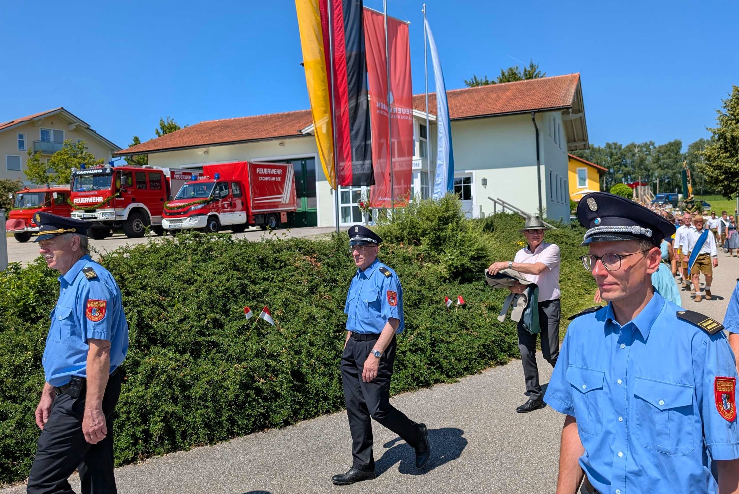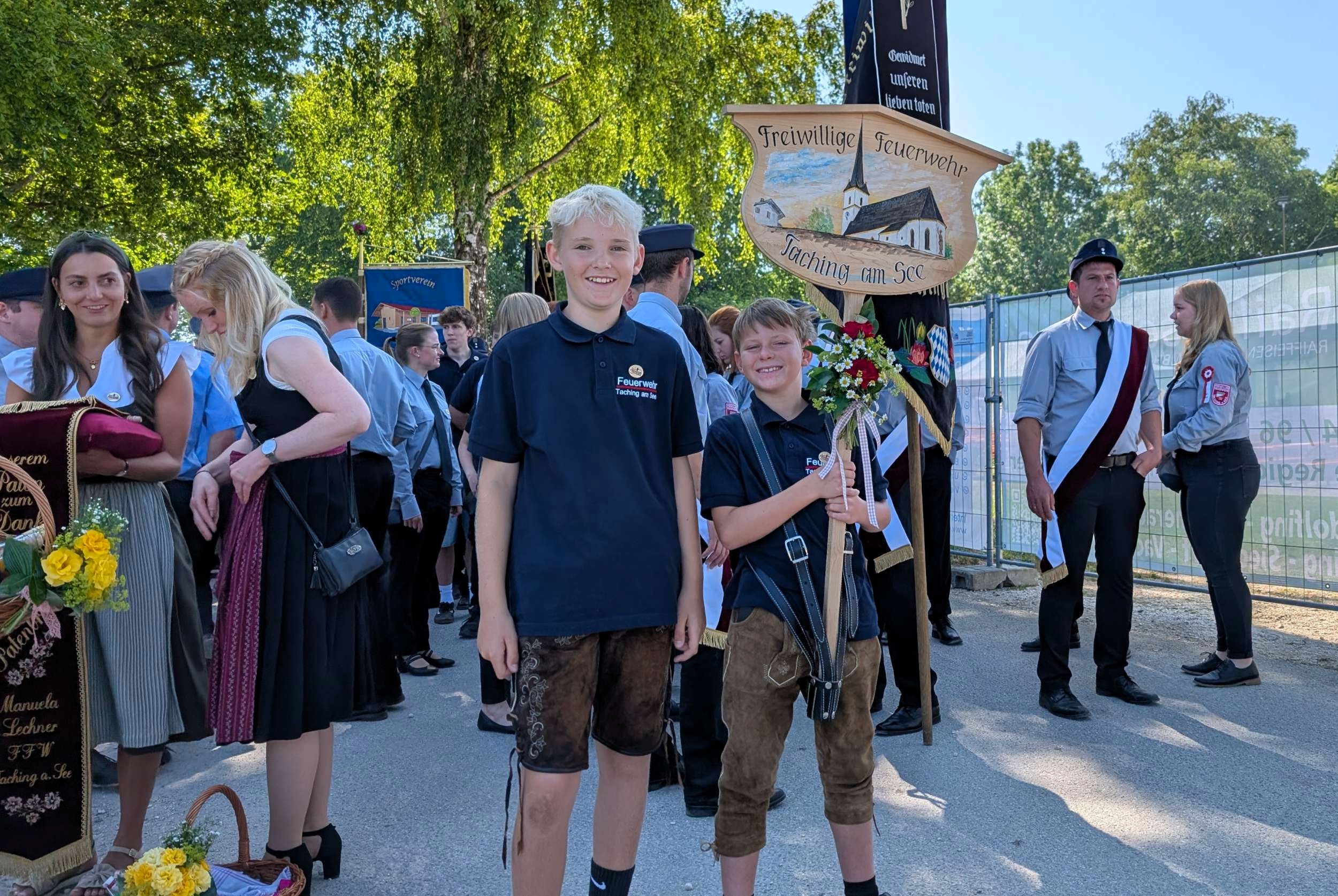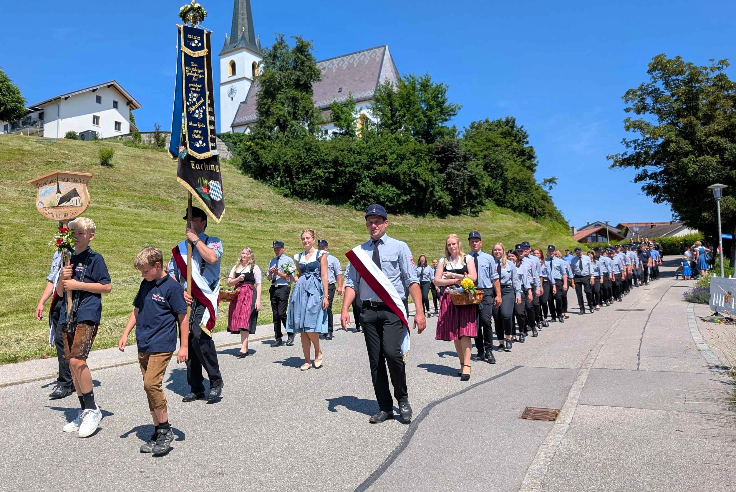 „Ohne die großartige Unterstützung unzähliger Helferinnen und Helfer aus dem ganzen Dorf wäre unser Fest niemals möglich gewesen“, zeigt sich Katja Stockhammer sehr dankbar und lobt dabei ausdrücklich auch alle Mitglieder der eigenen Feuerwehr aber auch die Gemeinde sowie Mitarbeiter des Bauhofs, allen voran die 1. Bürgermeisterin und Schirmherrin Stefanie Lang. Ein Wort des Dankes richtet die Festleiterin auch an die Feuerwehren Tengling und Tettenhausen, die bei der Verkehrsabsicherung und beim Parkplatzdienst geholfen haben. Vergelts Gott sagen die Verantwortlichen auch beim Sportverein Taching für das Bereitstellen der Flächen und bei allen mitwirkenden Ortsvereinen und weiteren Helfern aus Taching.
