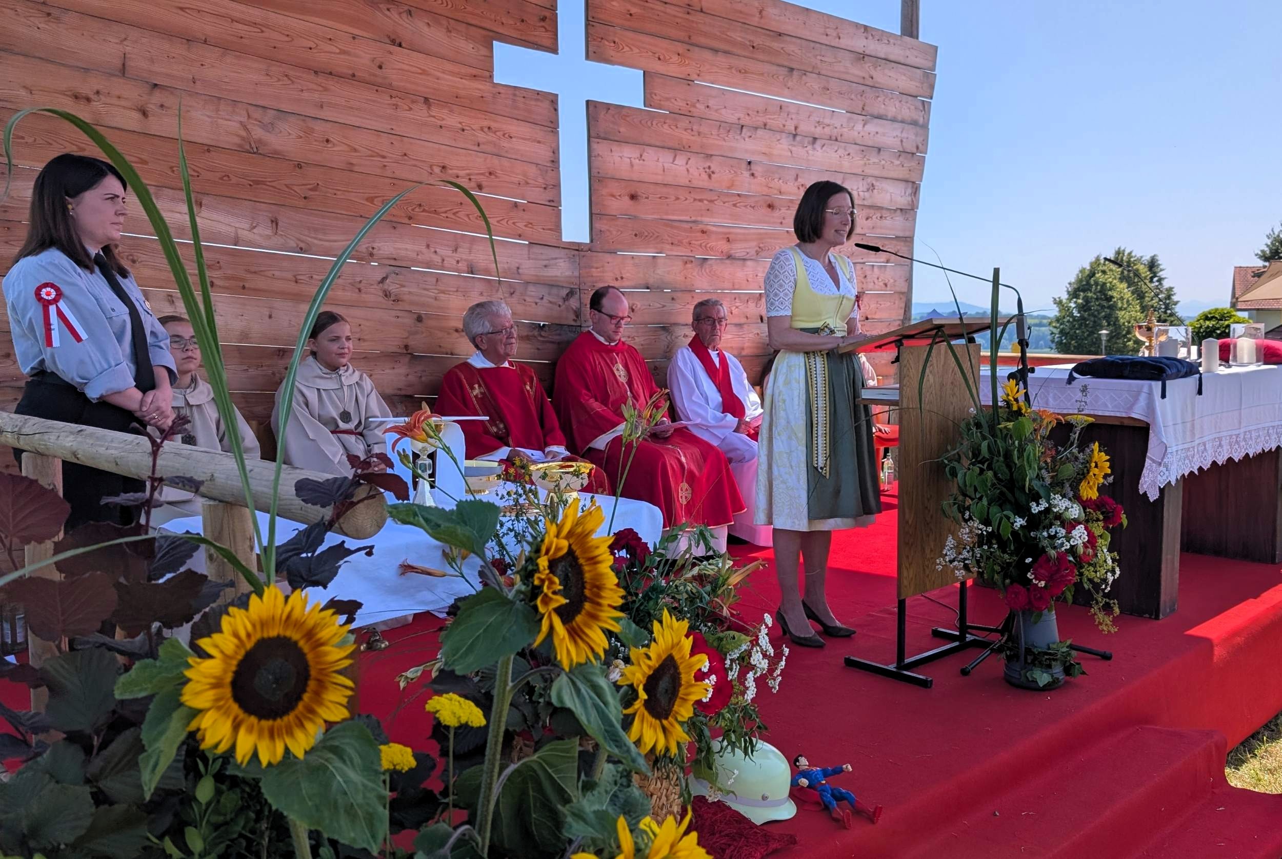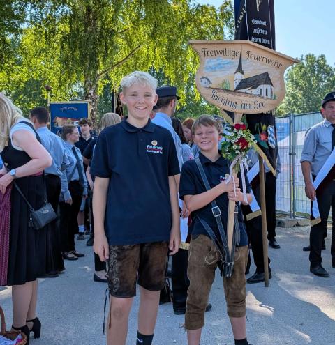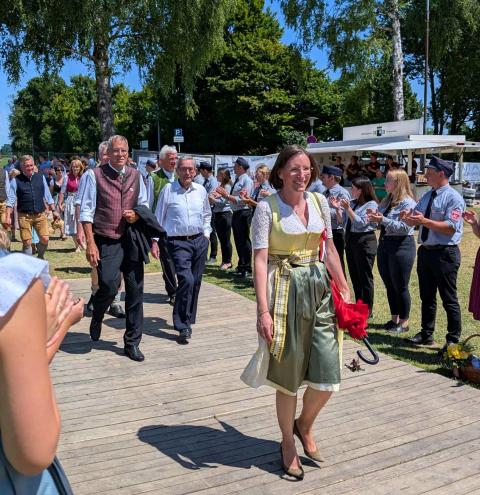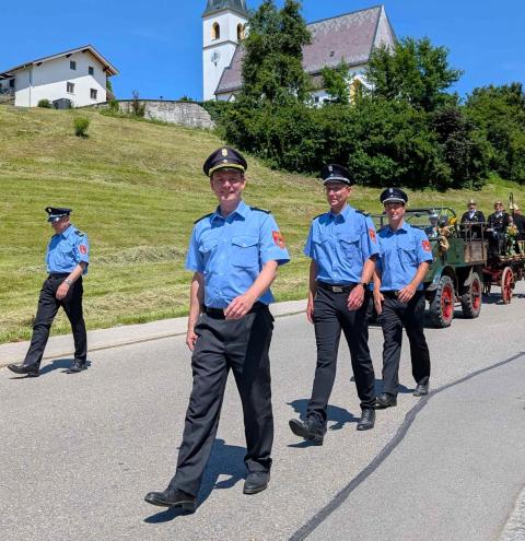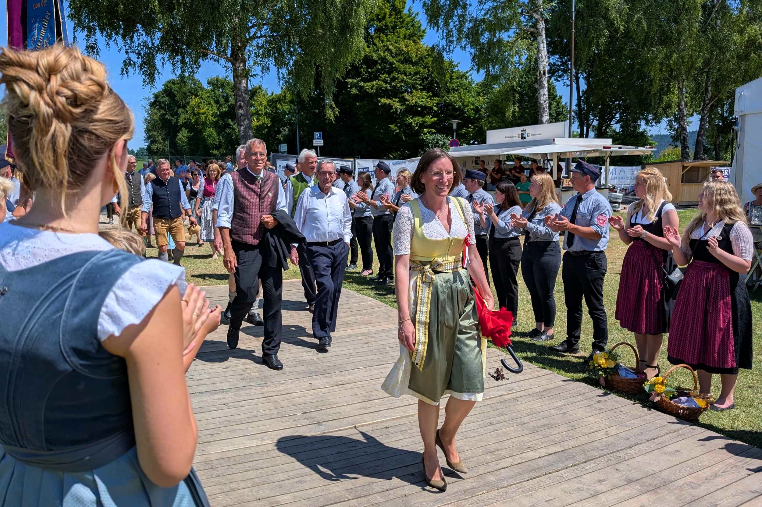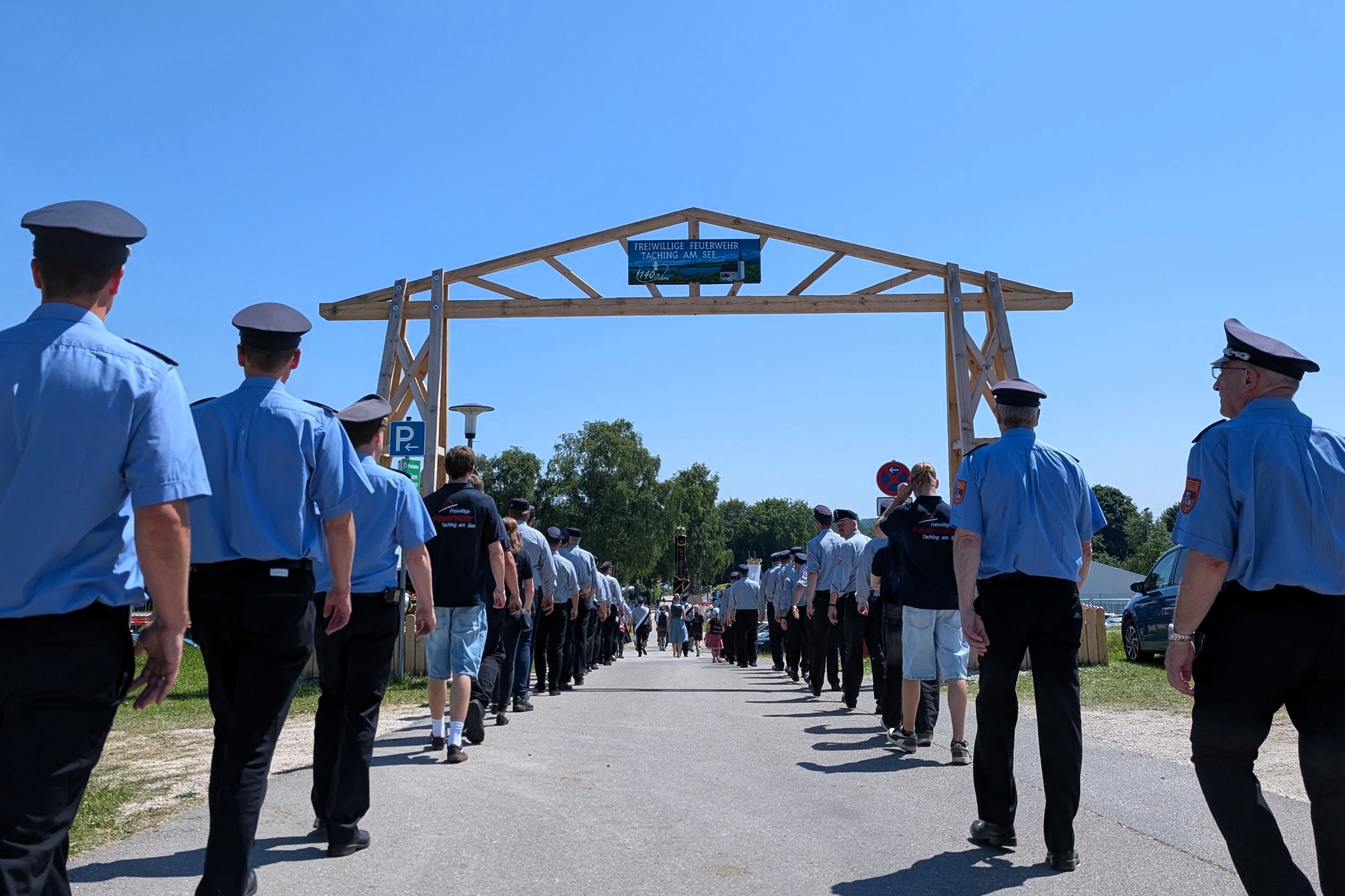 „Ohne die großartige Unterstützung unzähliger Helferinnen und Helfer aus dem ganzen Dorf wäre unser Fest niemals möglich gewesen“, zeigt sich Katja Stockhammer sehr dankbar und lobt dabei ausdrücklich auch alle Mitglieder der eigenen Feuerwehr aber auch die Gemeinde sowie Mitarbeiter des Bauhofs, allen voran die 1. Bürgermeisterin und Schirmherrin Stefanie Lang. Ein Wort des Dankes richtet die Festleiterin auch an die Feuerwehren Tengling und Tettenhausen, die bei der Verkehrsabsicherung und beim Parkplatzdienst geholfen haben. Vergelts Gott sagen die Verantwortlichen auch beim Sportverein Taching für das Bereitstellen der Flächen und bei allen mitwirkenden Ortsvereinen und weiteren Helfern aus Taching.