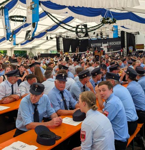 Bereits zum offiziellen Start der Festwoche am 18. Juni durften sich die Verantwortlichen über ein volles Haus freuen. Nachdem das erste Fass durch den 2. Bürgermeister Johann Steiner angezapft und die Grußworte der Schirmherrin und Bürgermeisterin Stefanie Lang gesprochen waren, feierten die Besucher beim Tag der guten Nachbarschaft, Vereine, Betriebe und Hütten bis tief in die Nacht „ihre Feuerwehr“.