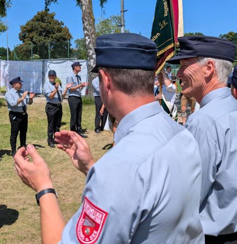 Dankbar zeigen sich die Verantwortlichen auch gegenüber dem Feuerwehrmitglied Stefan Kraller, „der als Festwirt wirklich nichts anbrennen hat lassen“, so Katja Stockhammer, die ergänzt, „und die Betreuung durch das Hofbräuhaus Traunstein war ebenfalls einmalig“. Danken möchten die Feuerwehrleute auch dem Altbürgermeister Hubert Schmid. Dieser hat eigens für das Feuerwehrfest ein neues Vereinstaferl für den Jubelverein gemalt.