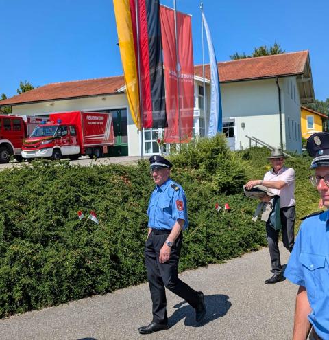 Der Einladung des Festvereins folgten seitens des Kreisfeuerwehrverbandes Traunstein Kreisbrandrat Christof Grundner, Kreisbrandinspektor Günter Wambach, Kreisbrandmeister Georg Fleischer, die beiden Fach-Kreisbrandmeister Stefan Thurner und Hubert Hobmaier sowie Fachberater Alexander Erber. Sie überbrachten im Namen des Kreisfeuerwehrverbandes Traunstein die Glückwünsche der Feuerwehren im Landkreis Traunstein. Hob