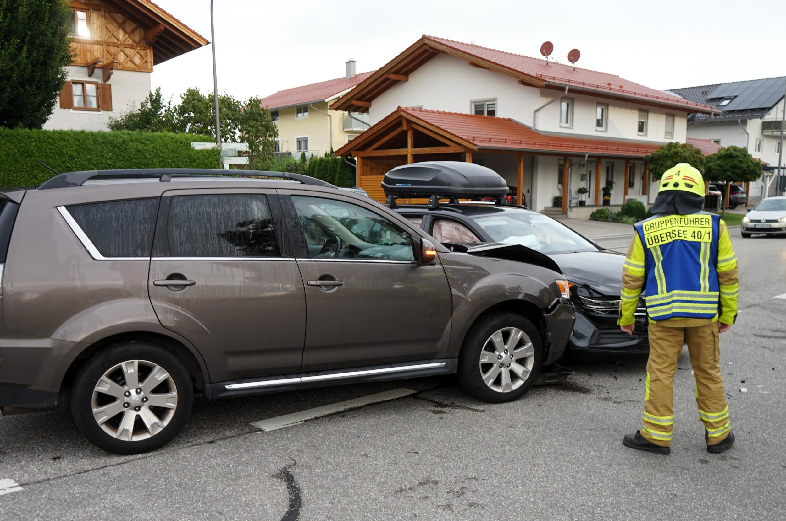 Übersee. Die Feuerwehr Übersee wurde am Mittwochmorgen (10. September) gegen 7:30 Uhr zusammen mit dem Rettungsdienst und der Polizei zu einem Verkehrsunfall alarmiert. Zwei PKW-Lenkerinnen waren an der Feldwieser Straße Abzweigung Moosener Straße mit ihren Fahrzeugen kollidiert. Dem Kenntnisstand der Feuerwehr zur Folge wollte die Passatfahrerin links abbiegen und übersah dabei den entgegenkommenden Mitsubishi. In Folge des Unfalls wurden insbesondere die beiden Frontpartien der Autos schwer beschädigt. Verletzt wurde glücklicherweise niemand. Beide Fahrzeuge mussten abgeschleppt werden.
