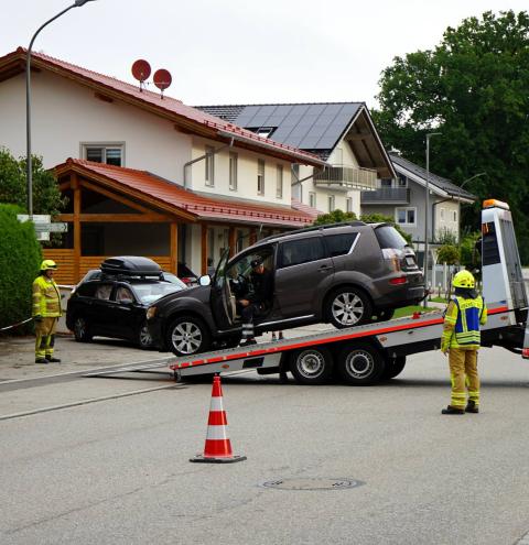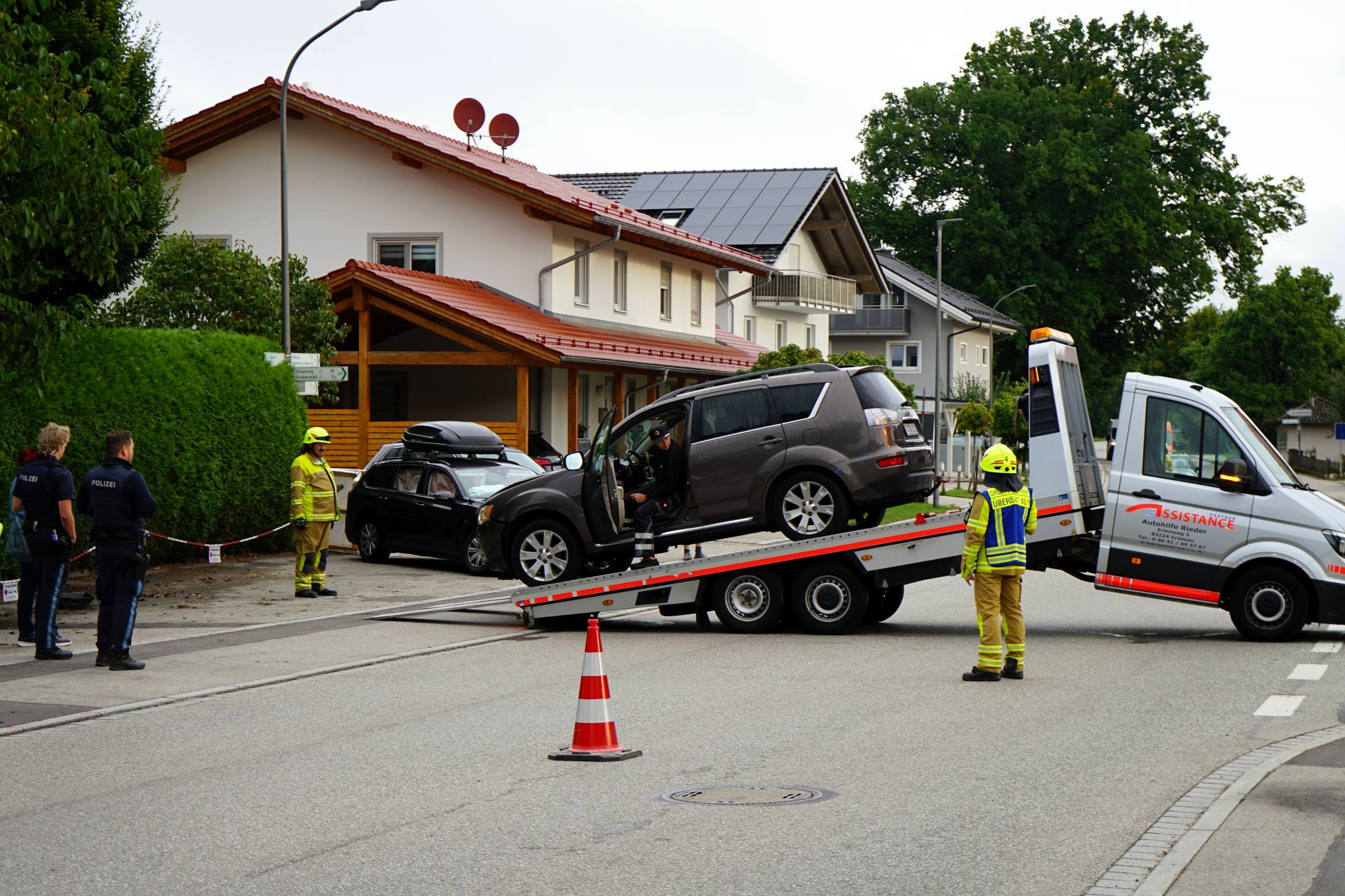Die alarmierte Rettungswagenbesatzung nahm die Unfallbeteiligten in Augenschein. Die Betroffenen verzichteten jedoch auf einen Transport ins Krankenhaus. Beamte einer Streifenbesatzung der Polizei haben den Vorfall aufgenommen. Beide Fahrzeuge waren nicht mehr fahrbereit und mussten abgeschleppt werden. Die Feuerwehr Übersee war mit 15 Einsatzkräften und drei Fahrzeugen rund eineinhalb Stunde im Einsatz. Hob