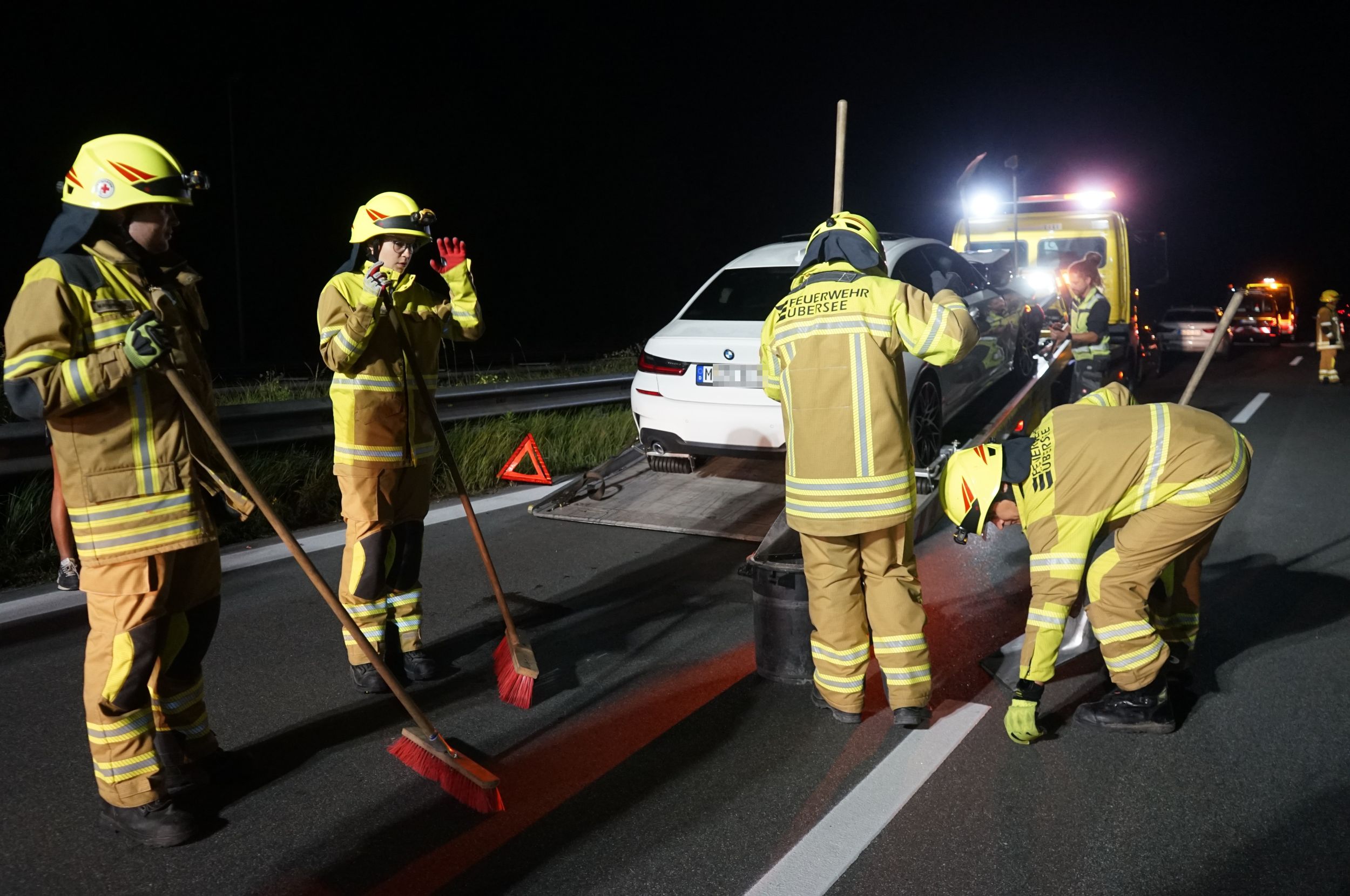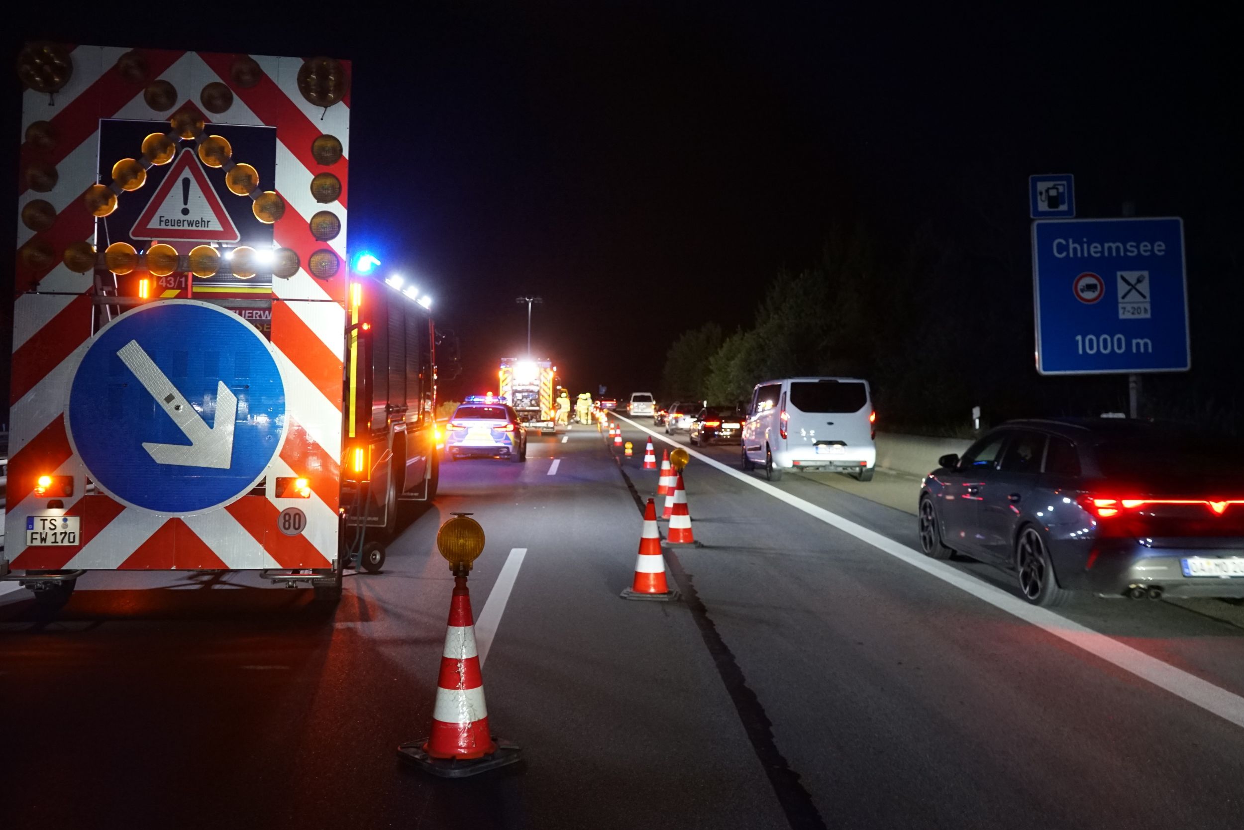 Die Feuerwehr Übersee wurde zusammen mit dem Rettungsdienst und der Polizei durch ein automatisches Notrufsystem (eCall) auf die Autobahn alarmiert. Vor Ort war es in Fahrtrichtung München zu einem Auffahrunfall mit drei beteiligten Fahrzeugen gekommen, in denen sich insgesamt elf Personen befanden. Verletzt wurde glücklicherweise niemand, dennoch sorgten die Floriansjünger mit Plüschfiguren bei zwei Kindern für strahlende Augen. Zwei Fahrzeuge konnten ihre Fahrt vorsetzen. Ein PKW musste abgeschleppt werden. Ein Fahrzeuglenker missbrauchte die Rettungsgasse.