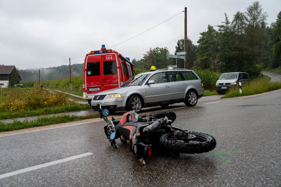Ein schrecklicher Verkehrsunfall mit tödlichem Ausgang ereignete sich auf der Lampodinger Straße kurz vor Kirchanschöring. Ersten Informationen nach sei eine 17-jährige Motorradfahrerin mit ihrer Aprilia mit einem Nissan auf Höhe der Kreuzung „Am Forsthaus“ frontal zusammengestoßen. Ein weiterer Fahrer mit seinem VW Passat sei ebenfalls beteiligt gewesen. Die junge Frau wurde bei dem Unfall so schwer verletzt, dass sie noch an der Unfallstelle verstarb. Die beiden Lenker der PKW erlitten einen Schock und wurden durch das Kriseninterventionsteam (KIT) der Malteser betreut. Weitere Informationen konnte die Polizei an der Unfallstelle noch nicht bekannt geben. Das BRK war mit einem Rettungswagen und einem Notarzteinsatzfahrzeug im Einsatz. Die Feuerwehr aus Kirchanschöring war mit drei Fahrzeugen und 12 Einsatzkräften vor Ort. Sie sperrten die Lampodinger Straße während der Unfallaufnahme für mehrere Stunden komplett. Die Polizei aus Laufen hat mit mehreren Streifen den Unfall aufgenommen. Zur weiteren Klärung des Unfallherganges hat die Staatsanwaltschaft Traunstein ein Unfallanalytisches Gutachten in Auftrag gegeben.
