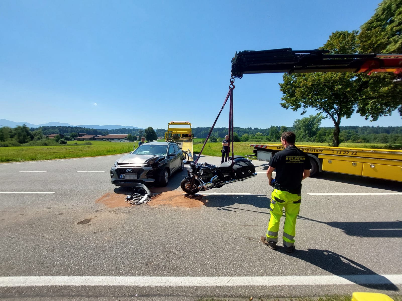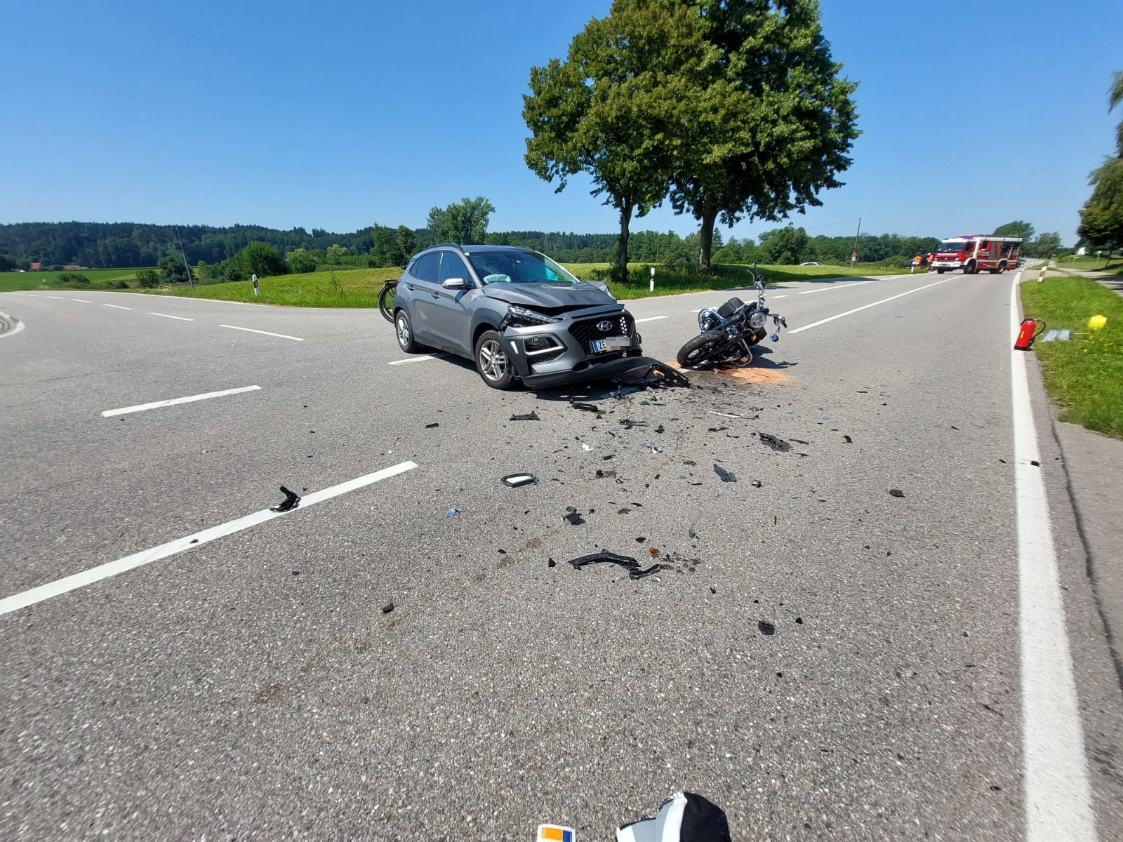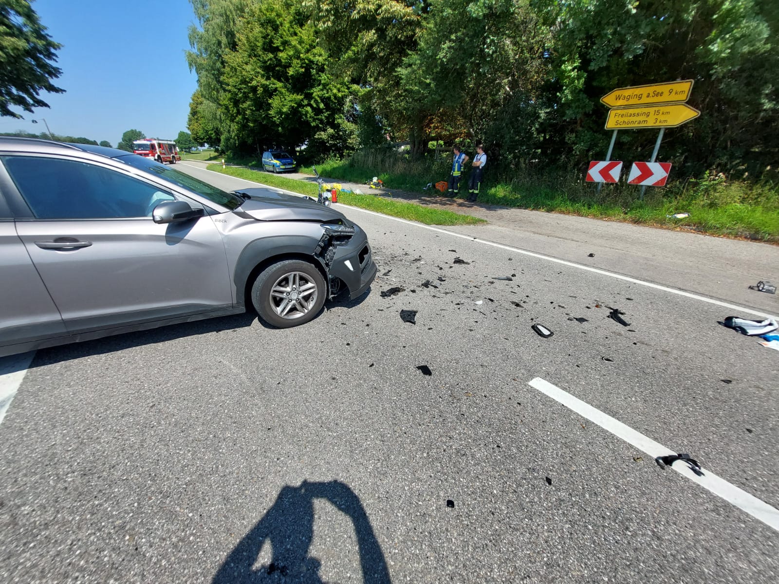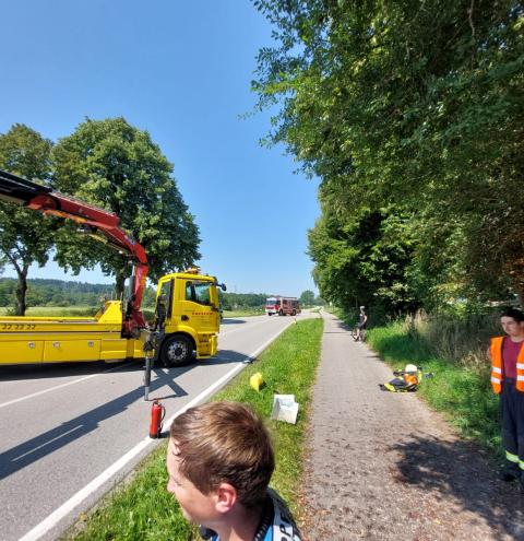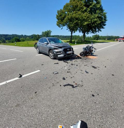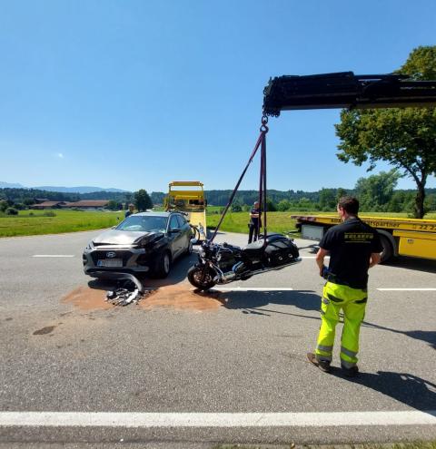 In Petting kam es heute zu einem Verkehrsunfall zwischen einem PKW und einem Motorrad. Die Feuerwehr Petting übernahm die Erstversorgung und stellte den Brandschutz sicher. Zudem wurde der Verkehr geregelt und die Fahrbahn gereinigt. Drei Einsatzfahrzeuge und 20 Kräfte waren rund drei Stunden im Einsatz. Die Polizei hat die Ermittlungen zur Unfallursache aufgenommen.