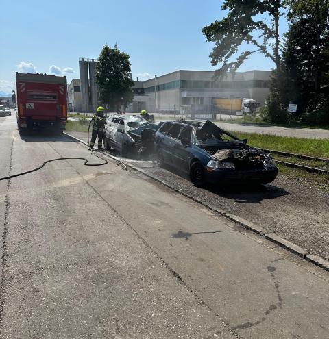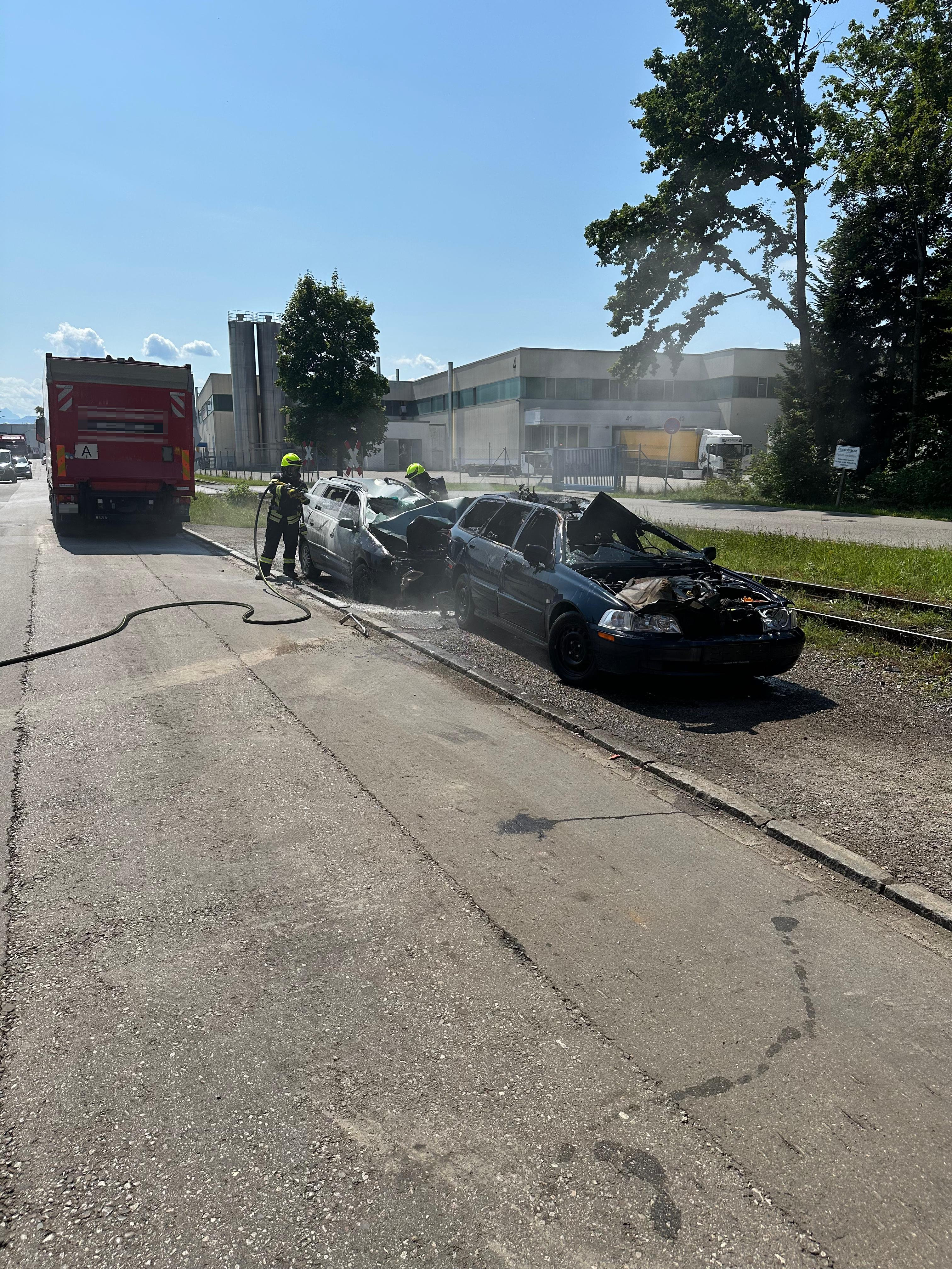 Brand im Freien/Zwei PKW – Im Einsatz die Feuerwehren Traunstein und Wolkersdorf
