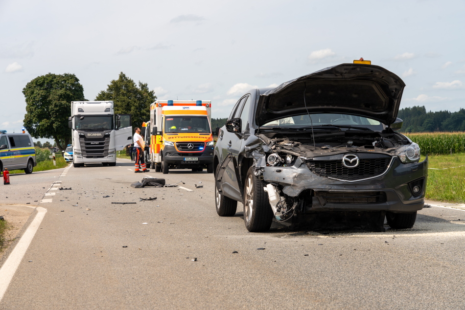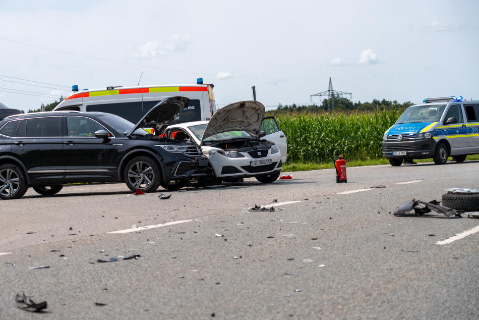 Zu einem Verkehrsunfall mit vier beteiligten Fahrzeugen kam es auf der ST 2098, Kreuzung Kirchbergstraße. Laut Informationen von vor Ort fuhr eine weibliche Lenkerin mit ihrem Seat Ibiza auf der ST 2098 von Traunstein kommend in Richtung Chieming. An der Kreuzung wollte sie nach links in die Kirchbergstraße einbiegen, jedoch übersah sie einen Münchner mit seinem Mazda CX-5. Durch den Aufprall schleuderte der Mazda in die Kirchbergstraße und stieß mit dem dort stehenden Volkswagen zusammen. Der hinter dem Mazda fahrende Seat konnte nicht mehr rechtzeitig bremsen und wurde ebenfalls in den Unfall verwickelt. Insgesamt wurden fünf Personen leicht bis mittelschwer verletzt und in die Krankenhäuser nach Traunstein und Prien eingeliefert. Der Rettungsdienst war mit zwei Rettungswägen, zwei Krankentransportwagen, einem Notarzteinsatzfahrzeug, dem Rettungshubschrauber Christoph 14 und dem Einsatzleiter Rettungsdienst vor Ort. Die Feuerwehren aus Erlstätt, Wolkersdorf und Chieming waren mit ach Fahrzeugen und circa 45 Einsatzkräften im Einsatz. Die Einsatzkräfte unterstützten bei der Erstversorgung der Verletzten, banden ausgelaufene Kraftstoffe und sperrten die ST 2098 während der Unfallaufnahme weiträumig ab. Die Polizei Traunstein war mit drei Streifen zur Unfallaufnahme vor Ort.
