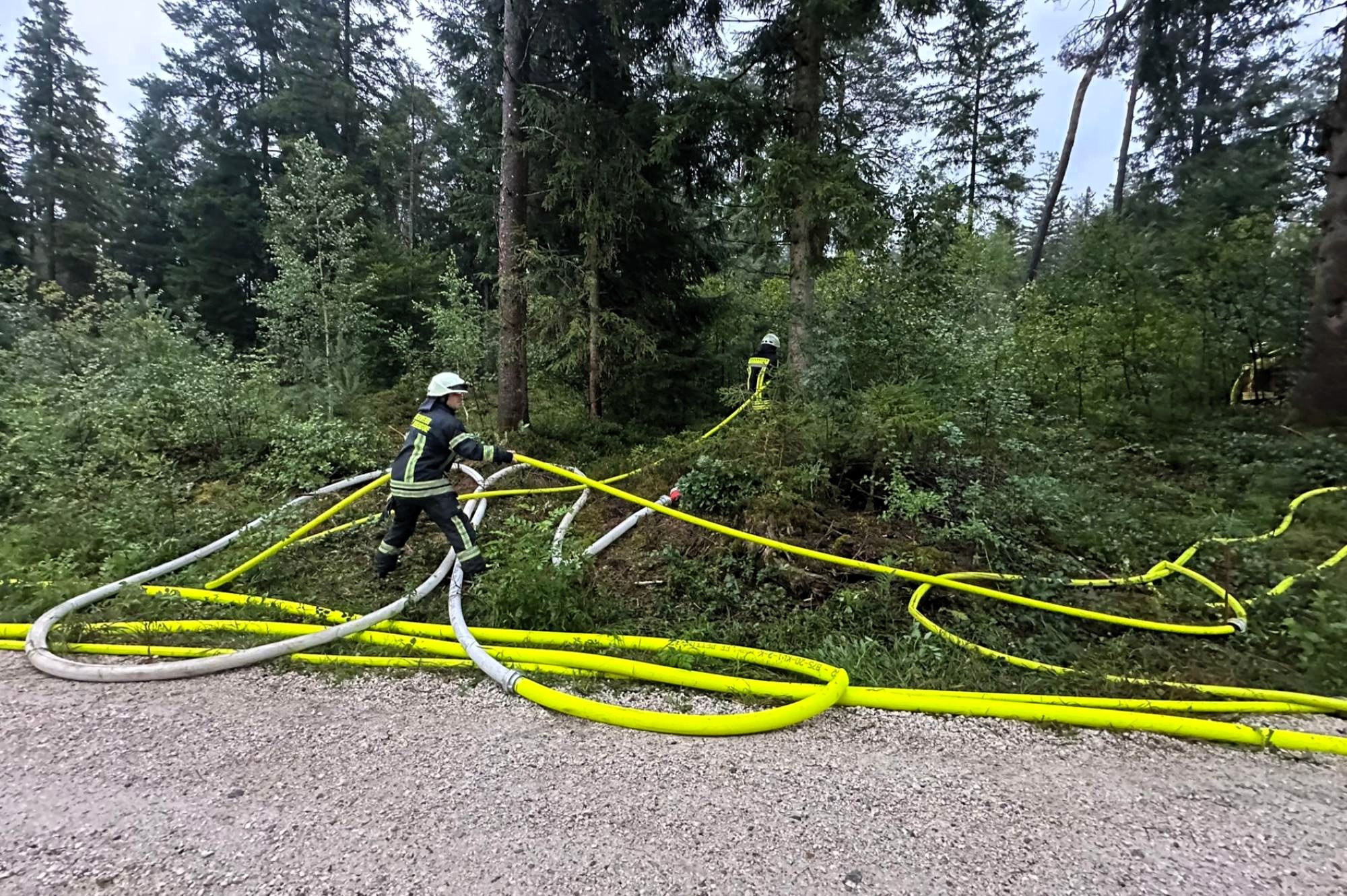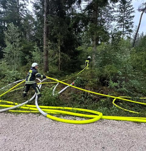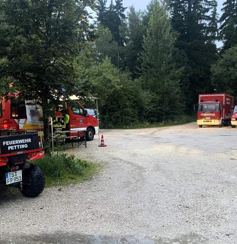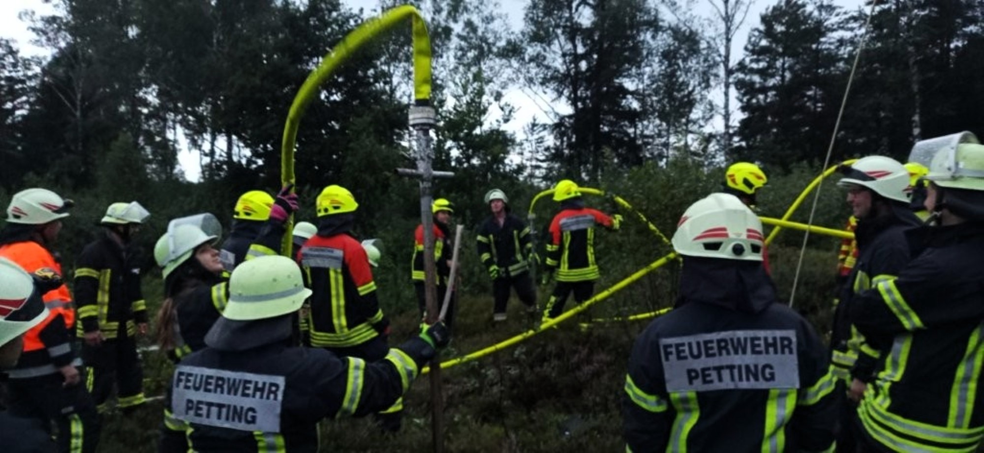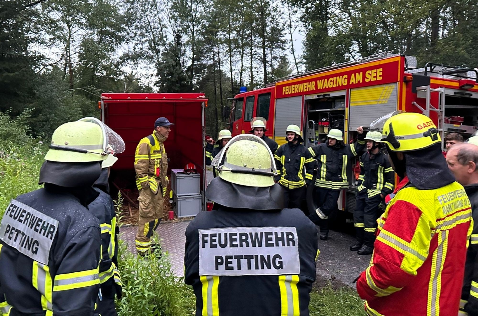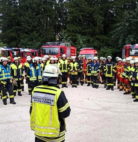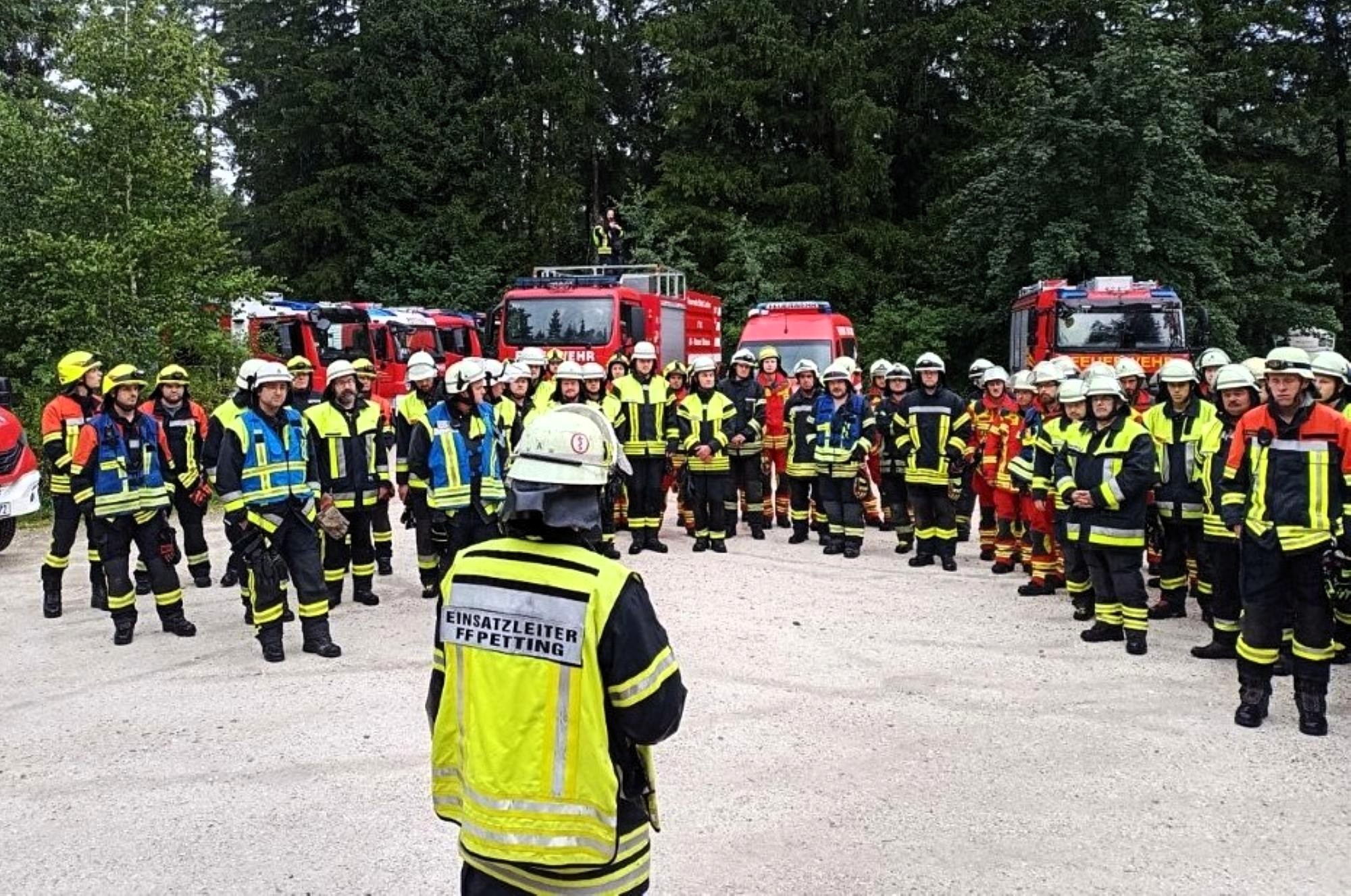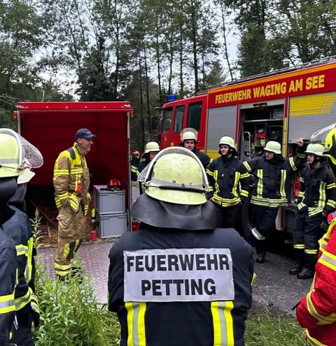 Feuerwehrleute aus den Landkreisen Traunstein und dem Berchtesgadener Land beteiligten sich an der mehrstündigen Ausbildungsveranstaltung, die mehrere Schwerpunkte und Themenfelder auf der Agenda hatte. Darüber hinaus waren auch Pettings 1. Bürgermeister Karl Lanzinger sowie Vertreter der Kreisbrandinspektion und des Forstes beteiligt und machten sich vor Ort ein Bild von den Übungssequenzen.