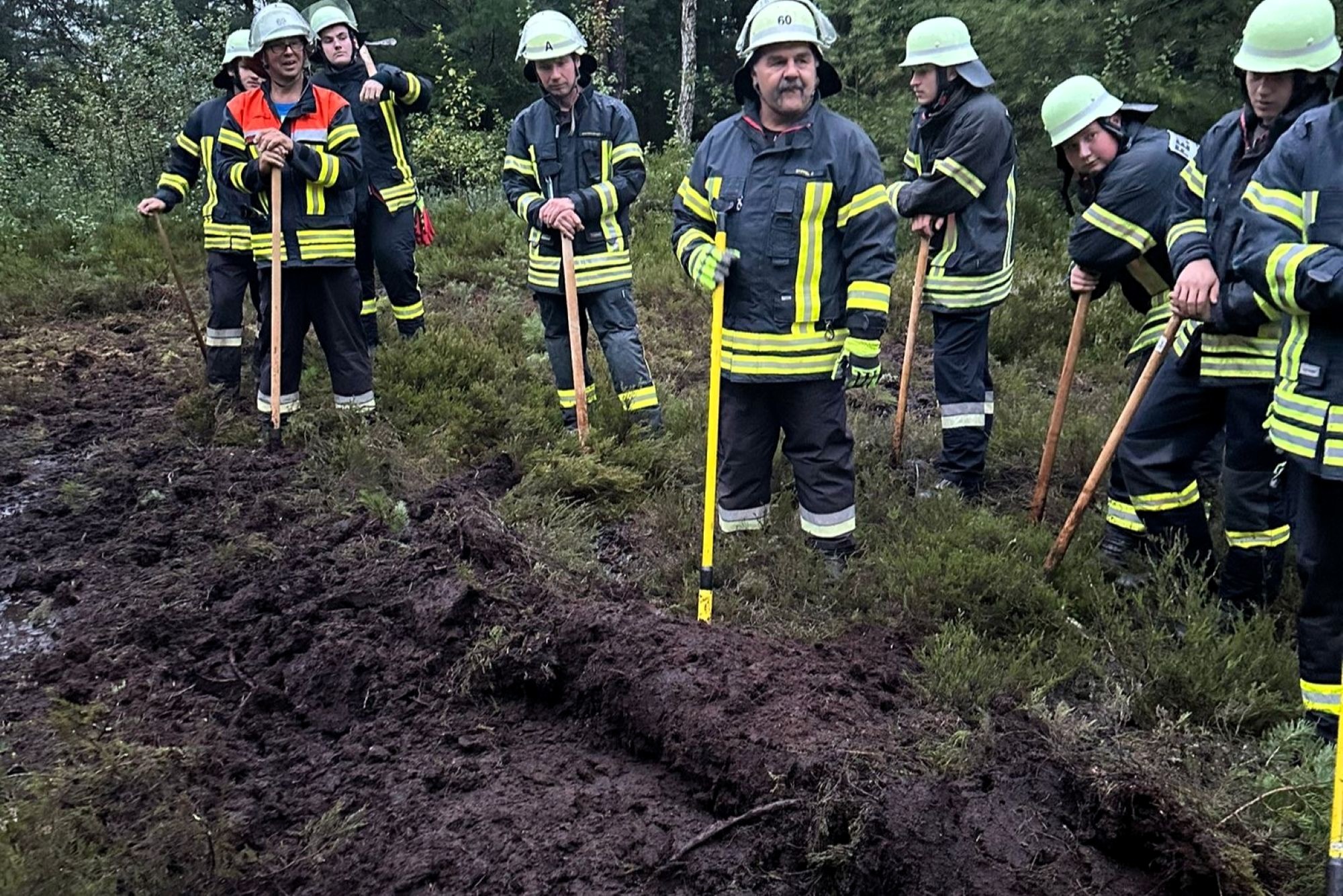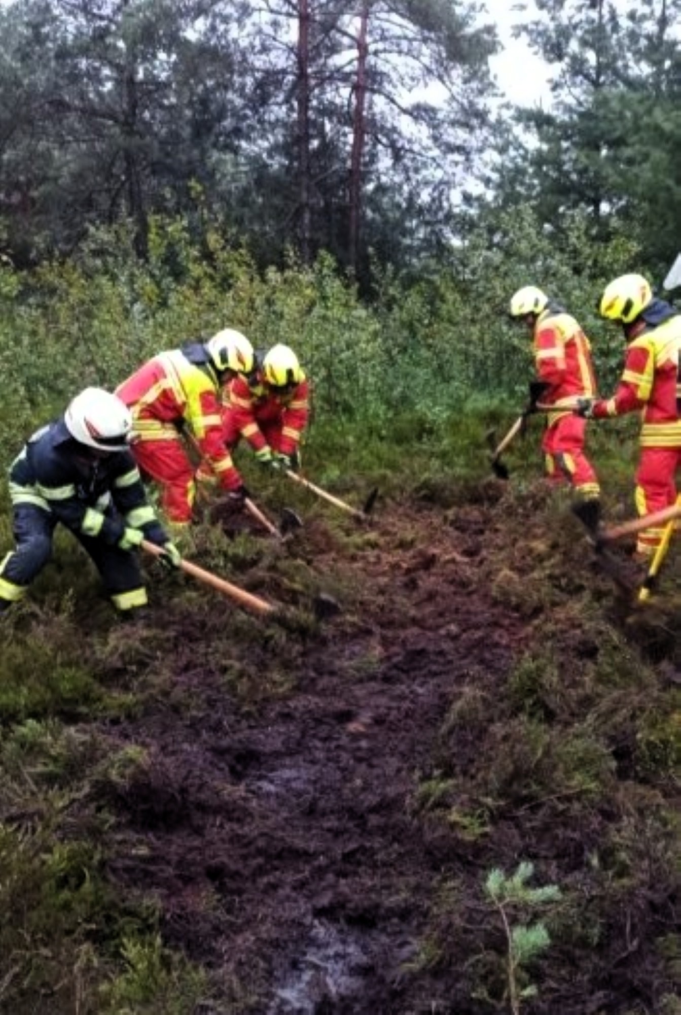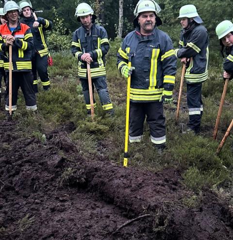 Die unterirdische Moorbrandbekämpfung bildete an Station 2 das Hauptaugenmerk. Dort wurden die Feuerwehrleute insbesondere für die versteckte Ausbreitung von Glutnestern im Boden sensibilisiert und Löschtechniken wie beispielsweise der Einsatz von Löschlanzen trainiert. Der stellvertretende Pettinger Kommandant Thomas Sammer war bei dieser Übungsstation federführend als Ausbilder tätig.