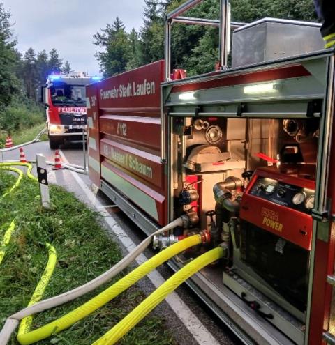 Ein zentraler Übungsschwerpunkt lag auf dem Wassertransport über lange Wegstrecken. Konkret wurden etwa 77.400 Liter Löschwasser mit fünf Löschfahrzeugen im sogenannten „Pendelverkehr“ zur Wasserübergabestation transportiert. Der Abrollbehälter „Löschwasser“ aus Laufen diente dazu als Wasserpuffer am Übungsort. Die Abschnittsleitung hatte Kommandant Sebastien Pertl von der Feuerwehr Laufen inne.