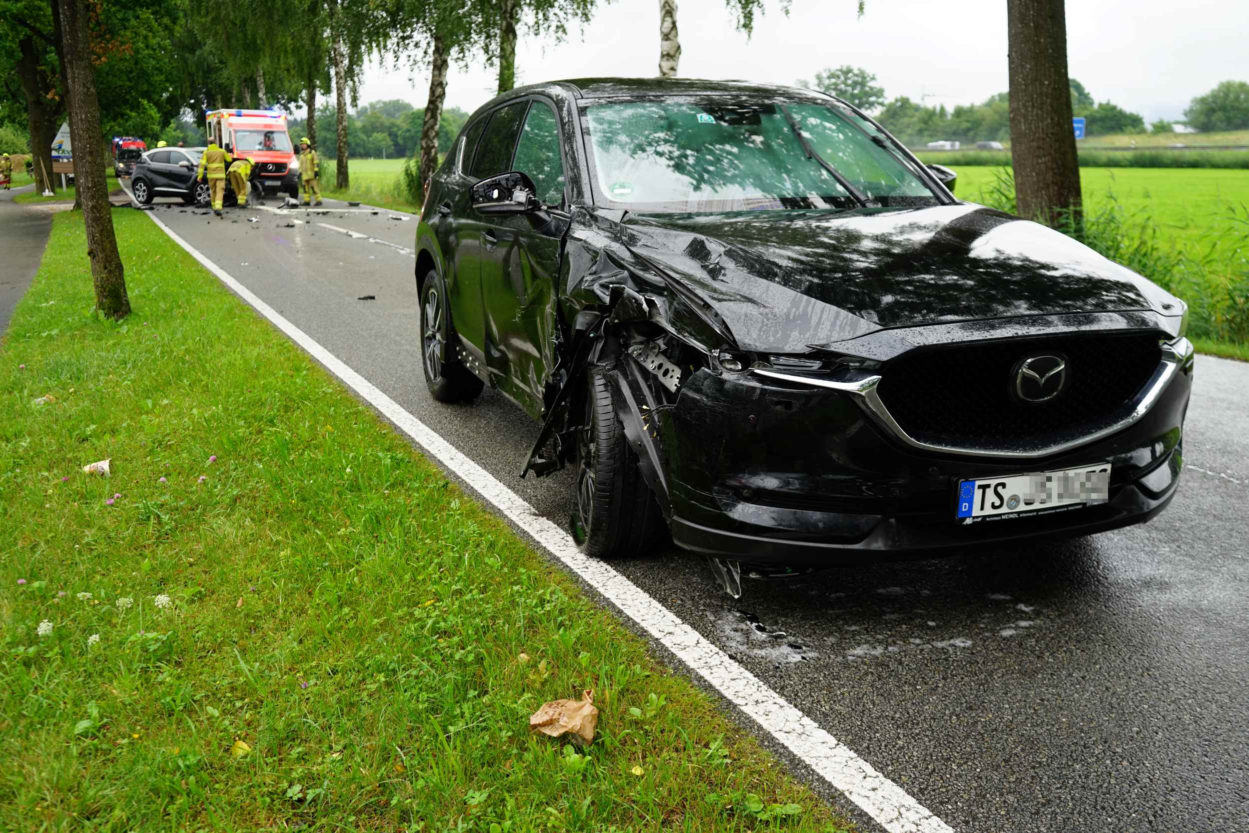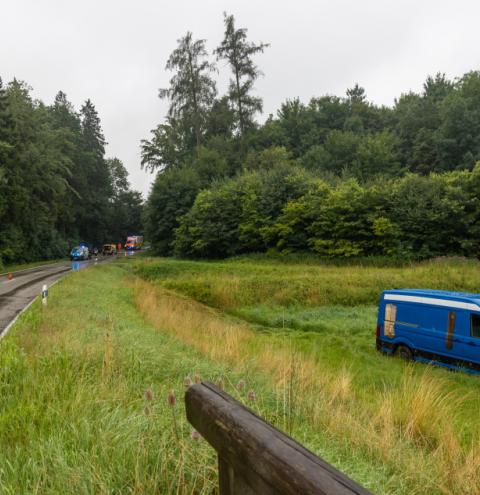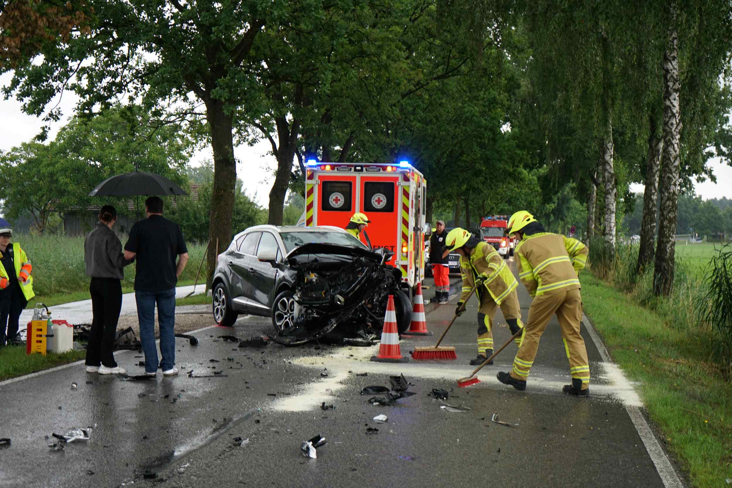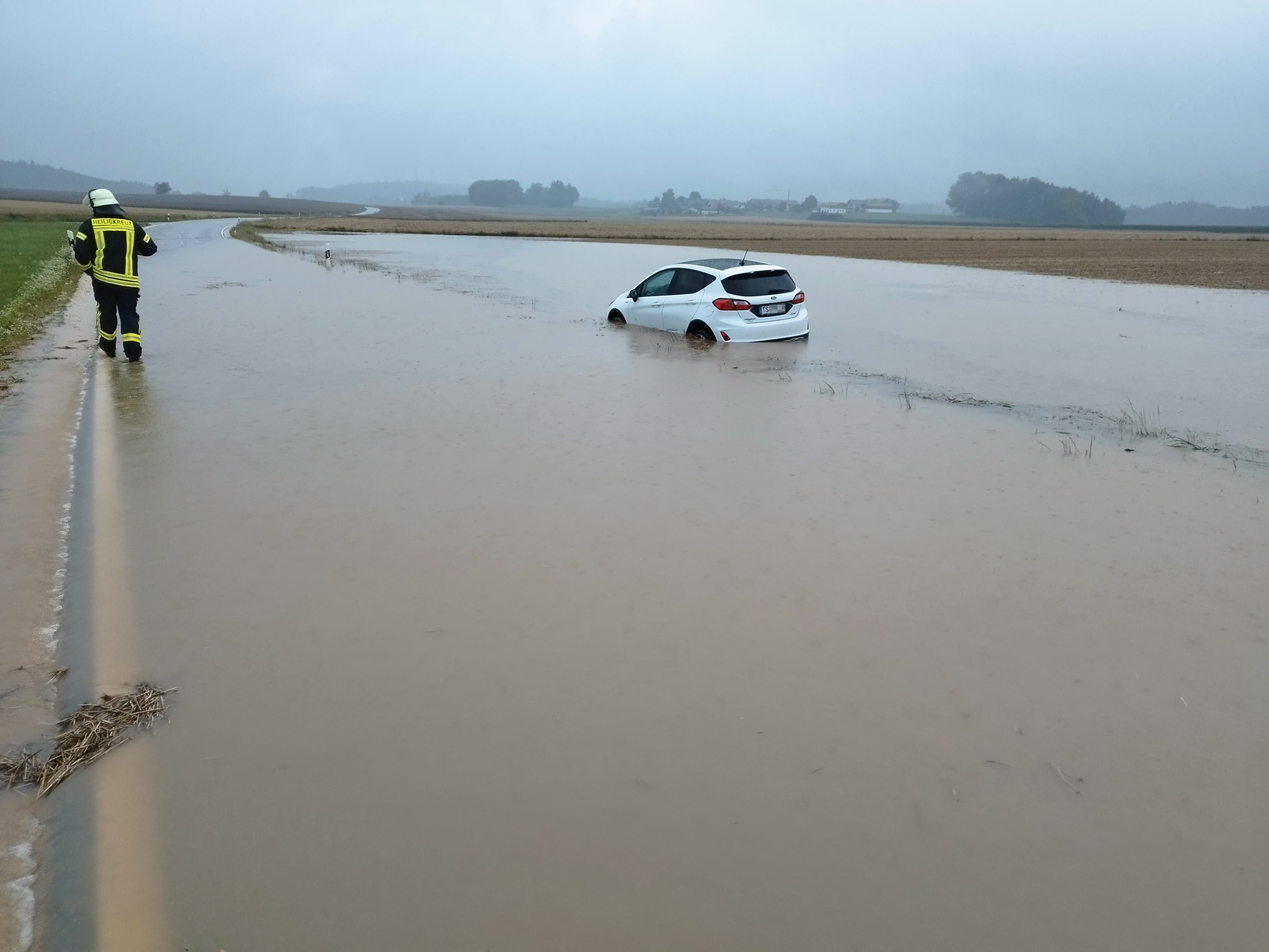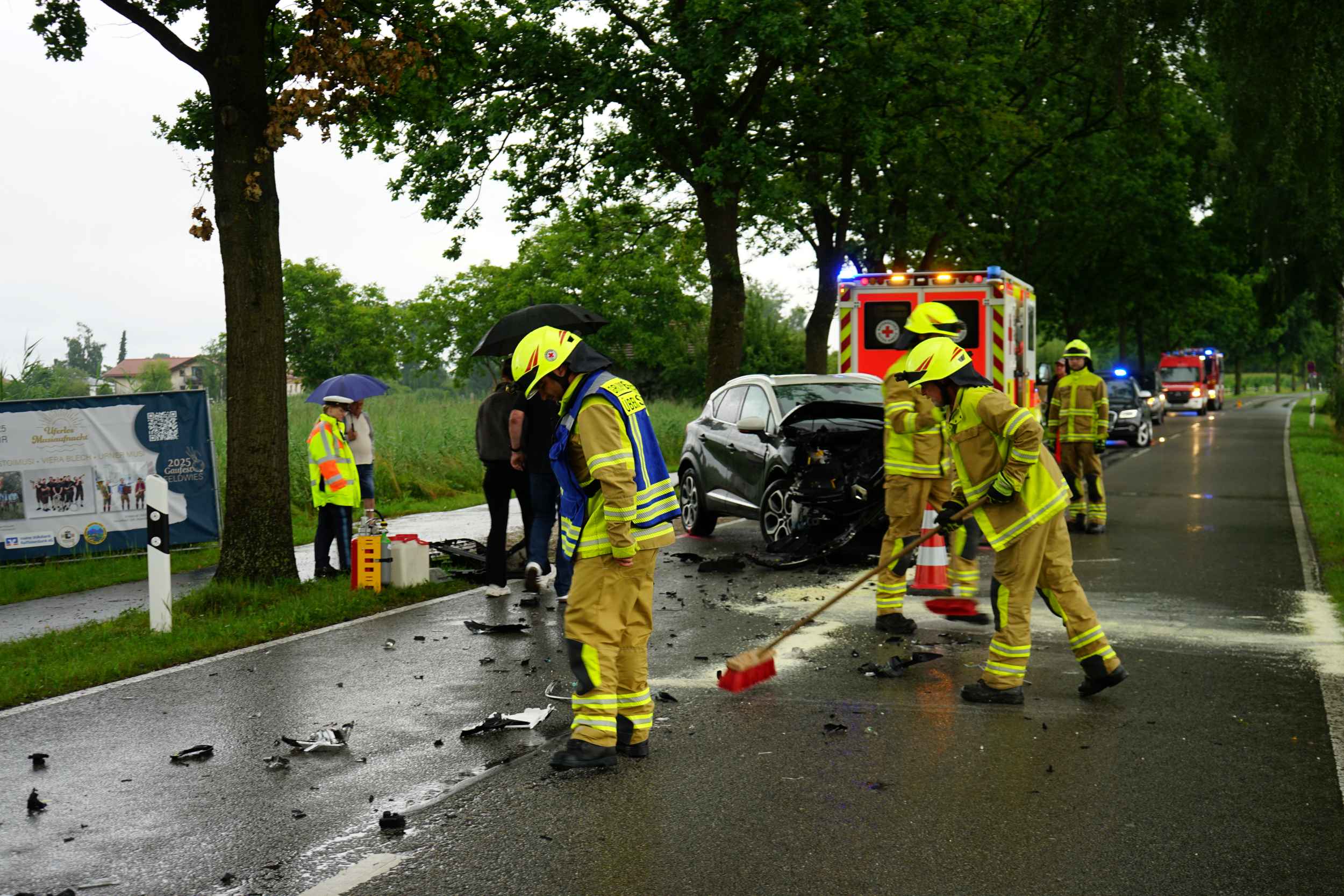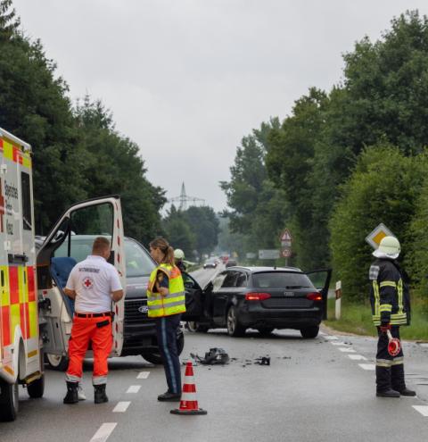 Mit dem Gegenverkehr kollidiert ist eine ältere Dame auf der ST2091 bei Peterskirchen. Ersten Informationen nach war eine ältere Dame mit ihrem VW unterwegs aus Richtung Taufkirchen in Fahrtrichtung Trostberg. Zwischen der Abzweigung zum Weiler Eck und dem Ortseingang Peterskirchen kam sie aus noch nicht geklärter Ursache in der bergaufwärts führenden Rechtskurve auf die Gegenfahrbahn. Hier kam ihr ein ortsansässiger Unternehmer mit seinem Werkstattwagen entgegen. Dieser versuchte noch nach rechts ins Bankett auszuweichen, konnte aber einen Zusammenstoß nicht mehr vermeiden. Der VW prallte in die linke Seite der Hinterachse des Transporters. Der Transporter schleuderte über die Gegenfahrbahn eine Böschung hinunter und kam in einer Wiese zum Stehen. Beide Verkehrsteilnehmer wurden glücklicherweise nicht verletzt. Die Besatzung des hinzugerufenen Rettungswagens musste niemanden in ein Krankenhaus transportieren. Die Feuerwehr Peterskirchen war mit 15 Einsatzkräften zur Verkehrslenkung vor Ort. Dieser wurde einseitig an der Unfallstelle vorbeigeleitet. Die Polizei aus Trostberg hat den Unfall aufgenommen. Beide Fahrzeuge wurden abgeschleppt.