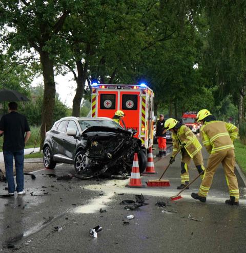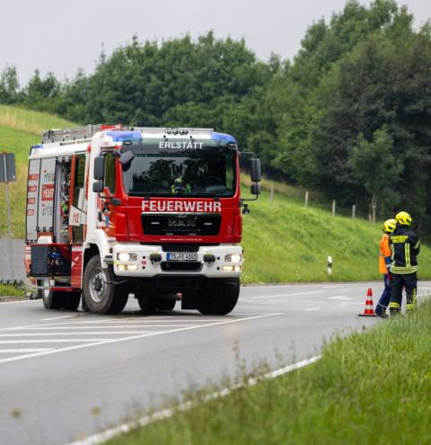 Ein Verkehrsunfall, bei dem zwei Fahrzeuge frontal zusammengestoßen sind, ereignete sich auf der St2095 am Erlstätter Berg. Ersten Informationen nach war eine Fahranfängerin mit ihrem VW unterwegs von Chieming kommend in Richtung Traunstein. Am Erlstätter Berg kam sie vermutlich wegen nicht angepasster Geschwindigkeit auf regennasser Fahrbahn in einer Rechtskurve nach links von der Fahrbahn ab. Zuerst prallte sie in die Leitplanke, bevor sie mit einem entgegenkommenden Mini, der von einer älteren Dame gelenkt wurde, frontal zusammenprallte. Hierbei wurden beide Frauen glücklicherweise nur leicht verletzt. Die Feuerwehr Erlstätt war mit ca. 25 Einsatzkräften vor Ort. Sie sperrten die St2095 komplett und leiteten den Verkehr über Erlstätt um. Des Weiteren übernahmen sie den Brandschutz und säuberten die Unfallstelle. Die Polizei aus Traunstein hat den Unfall aufgenommen. Beide Autos erlitten Totalschaden und wurden abgeschleppt.