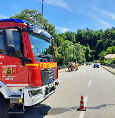 Verkehrsunfall mit Motorrad – Im Einsatz die Feuerwehren Traunstein und Haslach