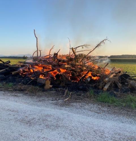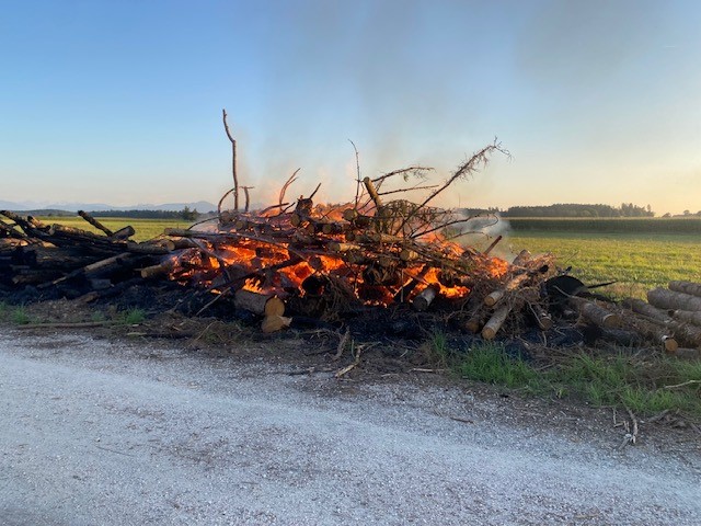 Palling. Wegen eines brennenden Holzhaufens, auf freier Wiesenfläche zwischen Polsing und Palling, rückten die Feuerwehren Palling und Freutsmoos am Montagabend aus. Gegen 19.40 Uhr wurden zunächst die Pallinger Floriansjünger alarmiert, nachdem der große Holzstoß an einem Feldweg nordöstlich von Polsing weithin sichtbar in Flammen stand. Die Polizei ermittelt wegen Brandstiftung.