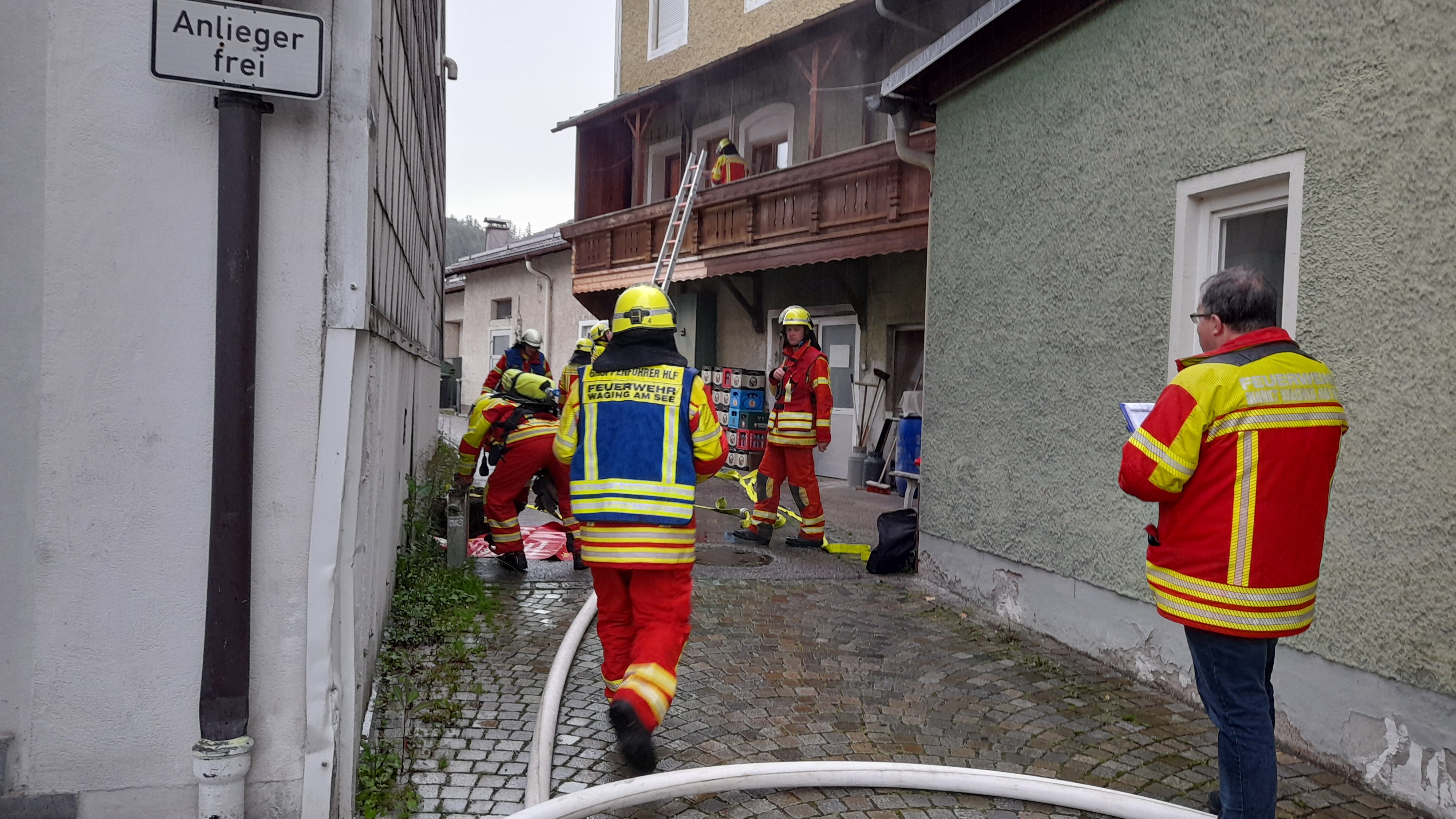 Einsatzübung der Feuerwehr Waging – Gasthof im Ortskern war Übungsobjekt