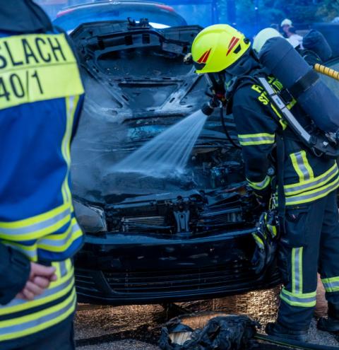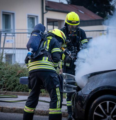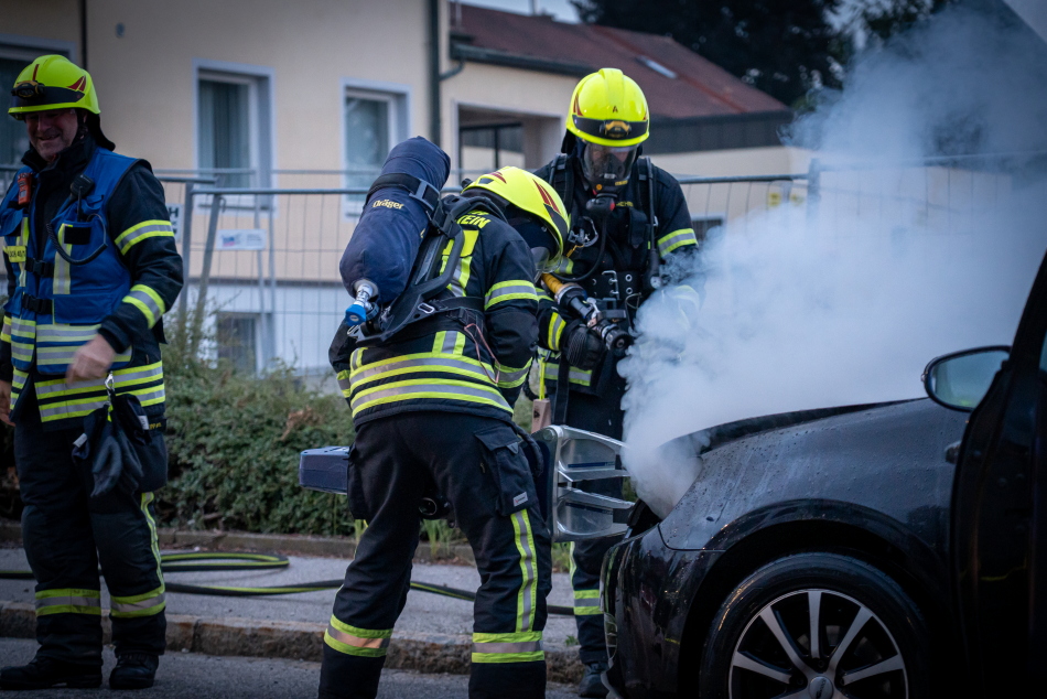 Ein VW Polo geriet in der Binderstraße in Traunstein in Brand. Während der Fahrt in die Binderstraße bemerkten der Fahrer und seine drei Mitfahrerinnen plötzlich Brandgeruch im Fahrzeug. Sie stoppten umgehend, verließen das Auto und stellten fest, dass der Motorraum bereits in Flammen stand. Die daraufhin alarmierten Feuerwehren Traunstein und Haslach konnten den Brand glücklicherweise auf den Motorraum einschränken. Mit einem Hydraulischen Akku – Spreizer wurde der Motorraum geöffnet, um die letzten Flammen abzulöschen. Die Einsatzkräfte der Feuerwehr waren mit sechs Fahrzeugen und 35 Ehrenamtlichen im Einsatz. Der alarmierte Rettungswagen des Rettungsdienstes konnte ohne Eingreifen wieder abrücken. Der Vorfall wurde durch die Polizei Traunstein aufgenommen.