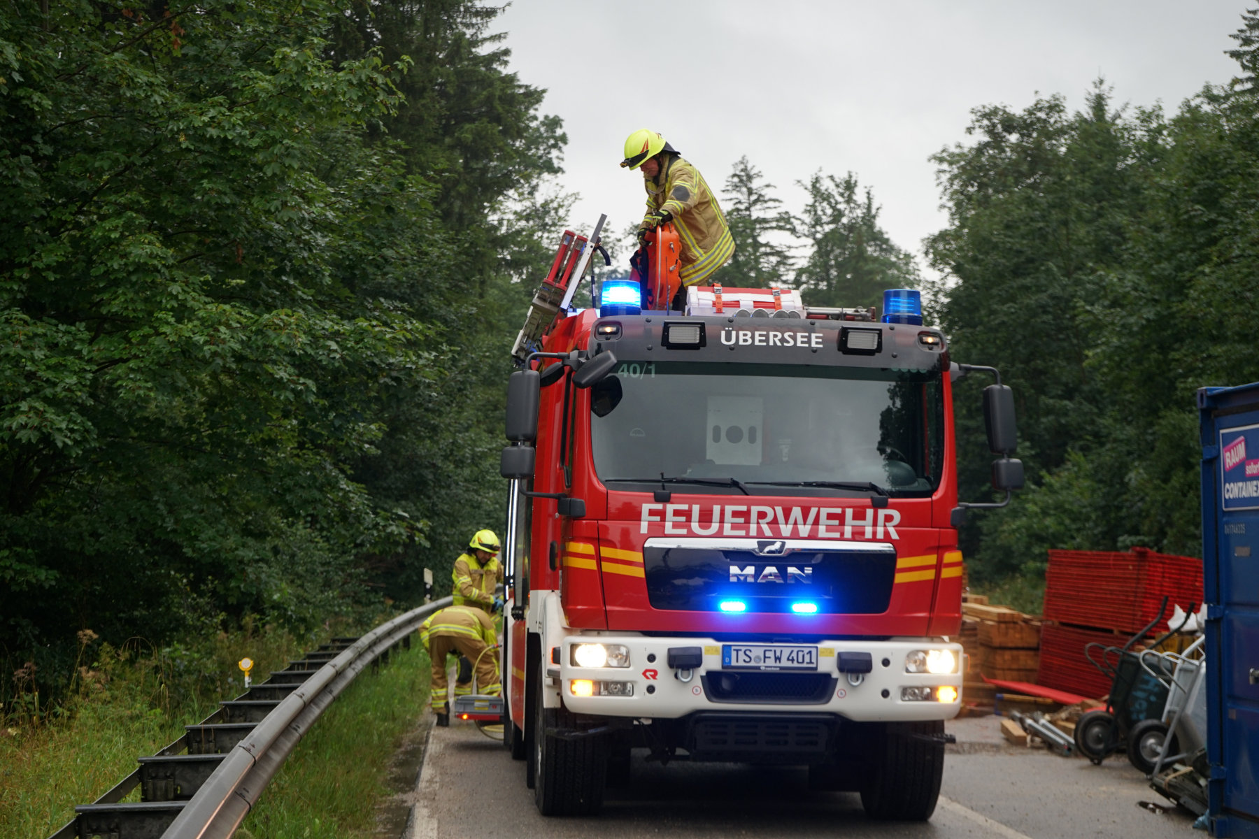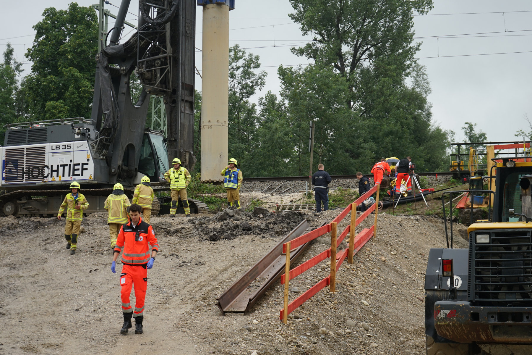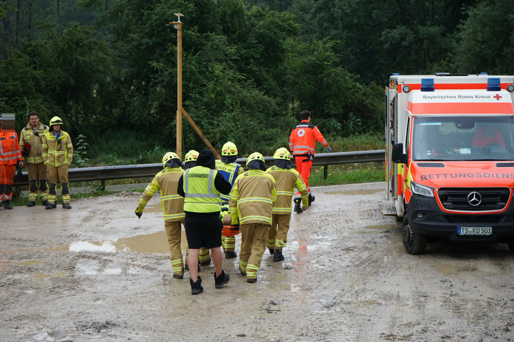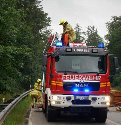In Übersee ereignete sich an einer Bahnbaustelle bei Rotgarben ein Arbeitsunfall. Die Feuerwehr Übersee wurde mit dem Stichwort „Tragehilfe“ von der Leitstelle Traunstein alarmiert. Gemeinsam mit dem Rettungsdienst wurde der Patient mittels einer Schleifkorbtrage nach der Erstversorgung sicher über den Bahndamm und die rutschige Böschung zum Rettungswagen gebracht. Im Einsatz waren 13 Einsatzkräfte der Feuerwehr Übersee.