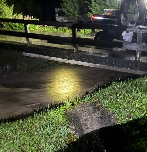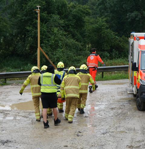 Straße überschwemmt; Drehleiterrettung