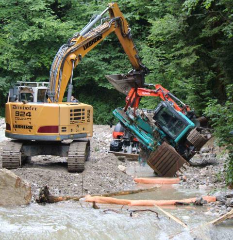 Im Rottauer Ortsteil Mühlwinkel ist ein 16 Tonnen schwerer Kettenbagger umgestürzt und im Flussbett des Rottauer Baches seitlich zum Liegen gekommen. Durch die Integrierte Leitstelle Traunstein erfolgte eine Alarmierung mit dem Einsatzstichwort „Technische Hilfeleistung – Fahrzeug sichern“ für die Feuerwehren Rottau, Grassau, Marquartstein und Bernau. Es entwickelte sich ein mehrstündiger Einsatz, der erst gegen 18:30 Uhr beendet werden konnte. Verletzt wurde niemand und auch ein Umweltschaden ist derzeit auszuschließen.
