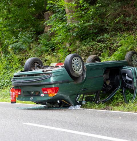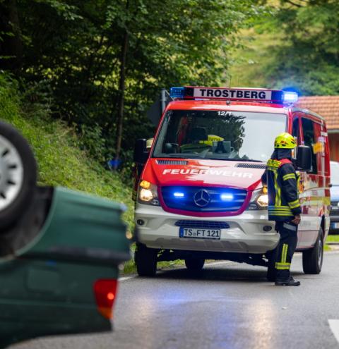 Ein Verkehrsunfall hat sich auf der TS 26 zwischen Trostberg und Palling am sogenannten Pallinger Berg an der Abzweigung nach Gaßberg ereignet. Ersten Informationen nach war eine weibliche Fahrzeuglenkerin, mit ihrem BMW älteren Baujahres, unterwegs von Trostberg kommend in Richtung Palling. An der Abzweigung nach Gaßberg verlor sie in der Linkskurve, vermutlich wegen nicht angepasster Geschwindigkeit, auf feuchter Fahrbahn die Kontrolle über das Fahrzeug, als das Heck ausbrach. Beim Versuch gegenzulenken kam sie ins Schleudern, fuhr eine Böschung hoch und der PKW überschlug sich. Das Auto kam auf dem Dach zum Liegen. Die Frau verletzte sich bei dem Unfall glücklicherweise nur leicht. Sie wurde durch das BRK mit einem Rettungswagen ins Klinikum nach Trostberg gefahren. Die Feuerwehren Lindach und Trostberg waren mit insgesamt 34 Einsatzkräften an der Unfallörtlichkeit. Sie sperrten die TS 26 in diesem Bereich für die Zeit der Unfallaufnahme und Bergung des Fahrzeuges komplett und leiteten den Verkehr weiträumig um. Auch die Reinigung der Unfallstelle wurde von der Feuerwehr übernommen. Die Polizei aus Trostberg hat den Unfall aufgenommen. Der BMW erlitt Totalschaden und wurde abgeschleppt.