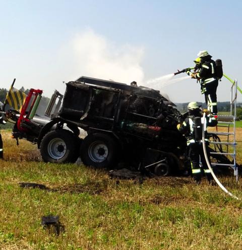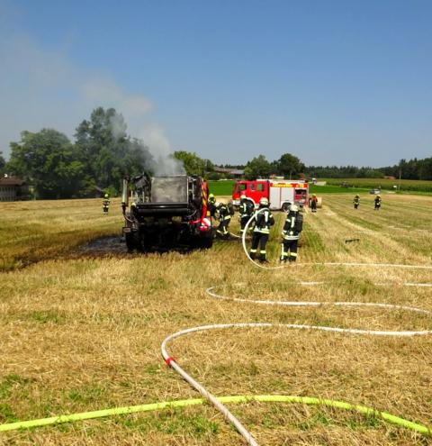 Die Feuerwehr Tacherting wurde zusammen mit den Feuerwehren Emertsham und Oberfeldkirchen mit dem Einsatzstichwort „B3 – Brand landwirtschaftliche Maschine“ auf ein Feld im Ortsteil Brandstätt alarmiert. Bei Eintreffen der Feuerwehren stand eine Ballenpresse in Vollbrand. Der dazugehörige Traktor konnte vom Landwirt rechtzeitig abgekuppelt und in Sicherheit gebracht werden. Der Sachschaden liegt nach einer ersten Schätzung der Feuerwehr deutlich im sechsstelligen Bereich. Verletzt wurde glücklicherweise niemand. Als Ursache wird derzeit von einem technischen Defekt ausgegangen.