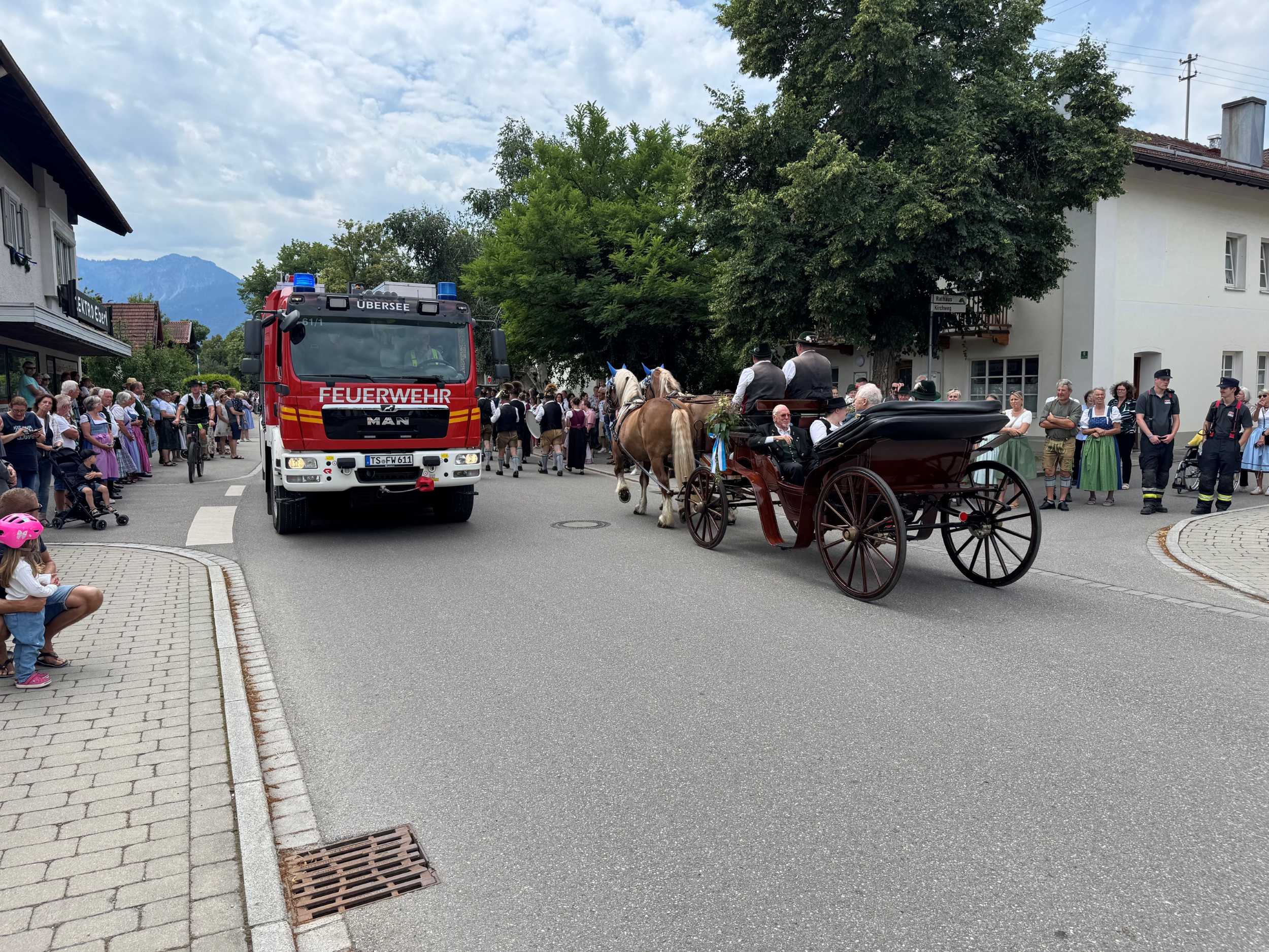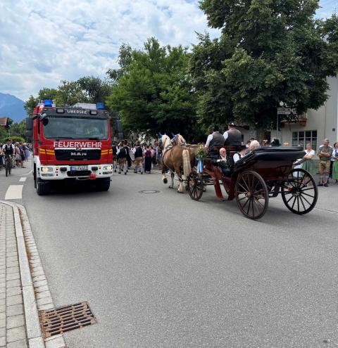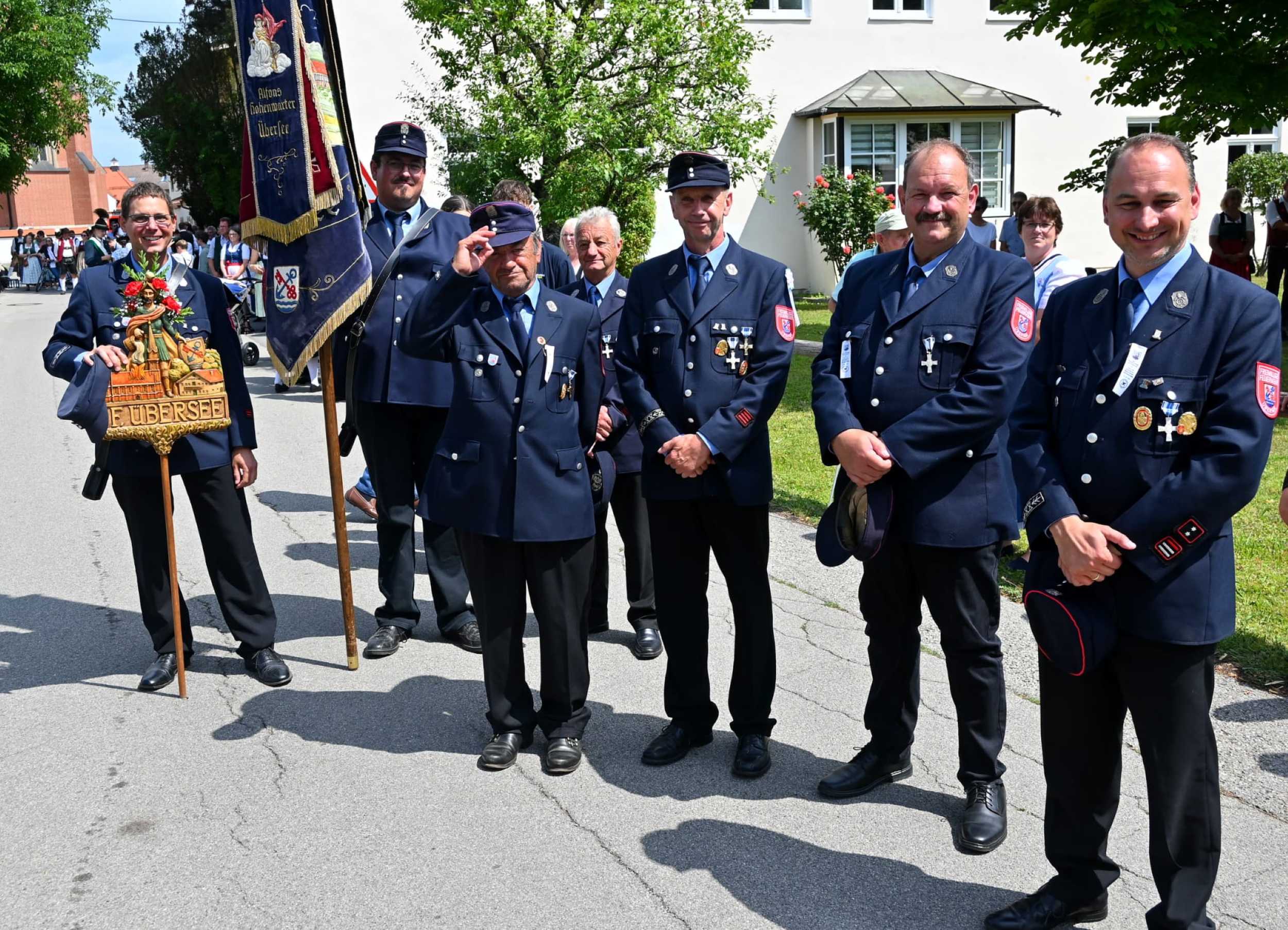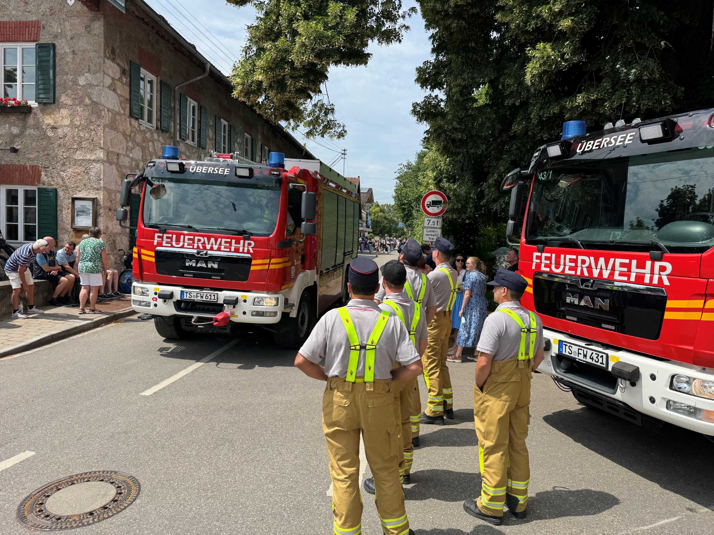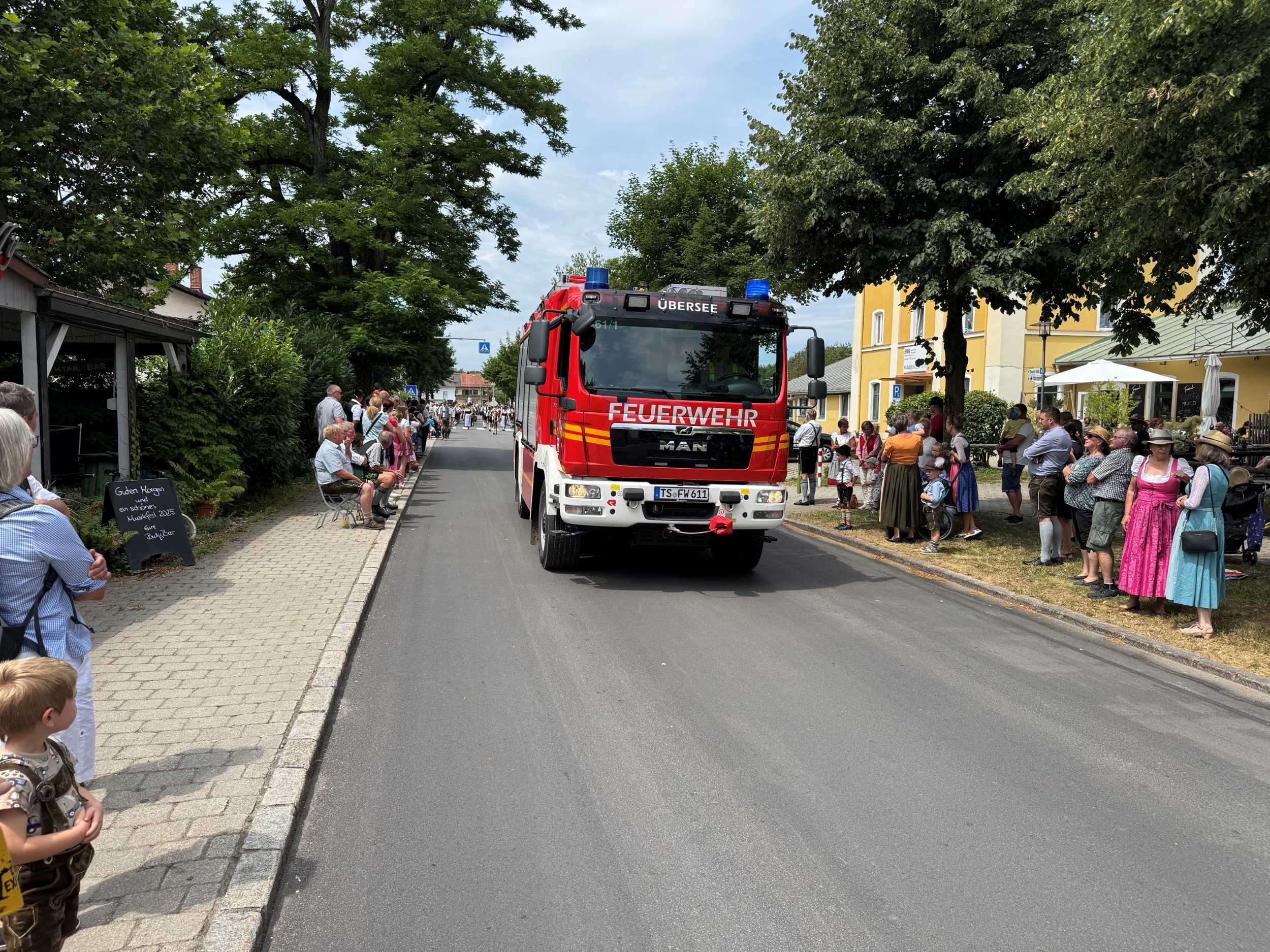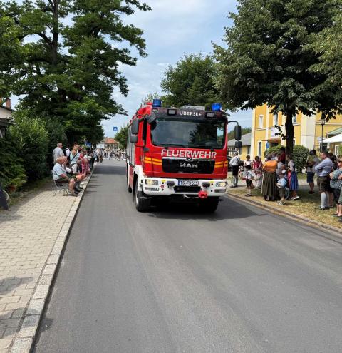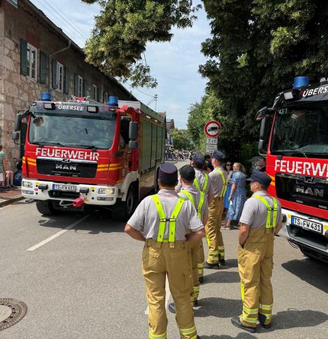 Die Feuerwehr betreute dabei insgesamt 14 unterschiedliche Absperrposten und zeigte sich mit einem Einsatzfahrzeug an der Spitze sowie am Ende des Festzuges für die Absicherung der Musikkapellen auf den Verkehrsflächen verantwortlich. Dazu wurde eigens eine Einsatzleitung von Feuerwehr, Polizei und Rettungsdienst im Feuerwehrhaus Übersee eingerichtet, bei der die Fäden rund um dieses Großereignis zusammengelaufen sind.
