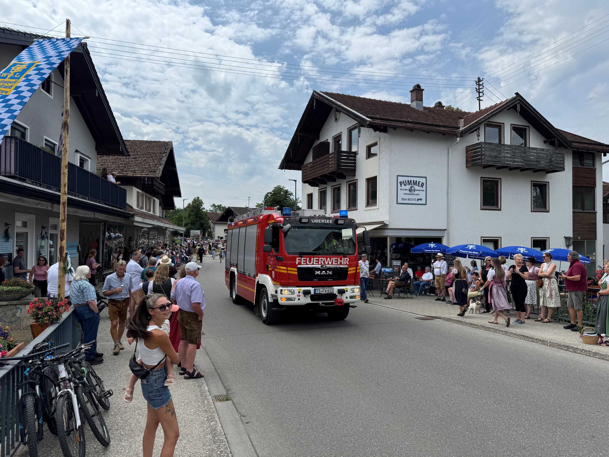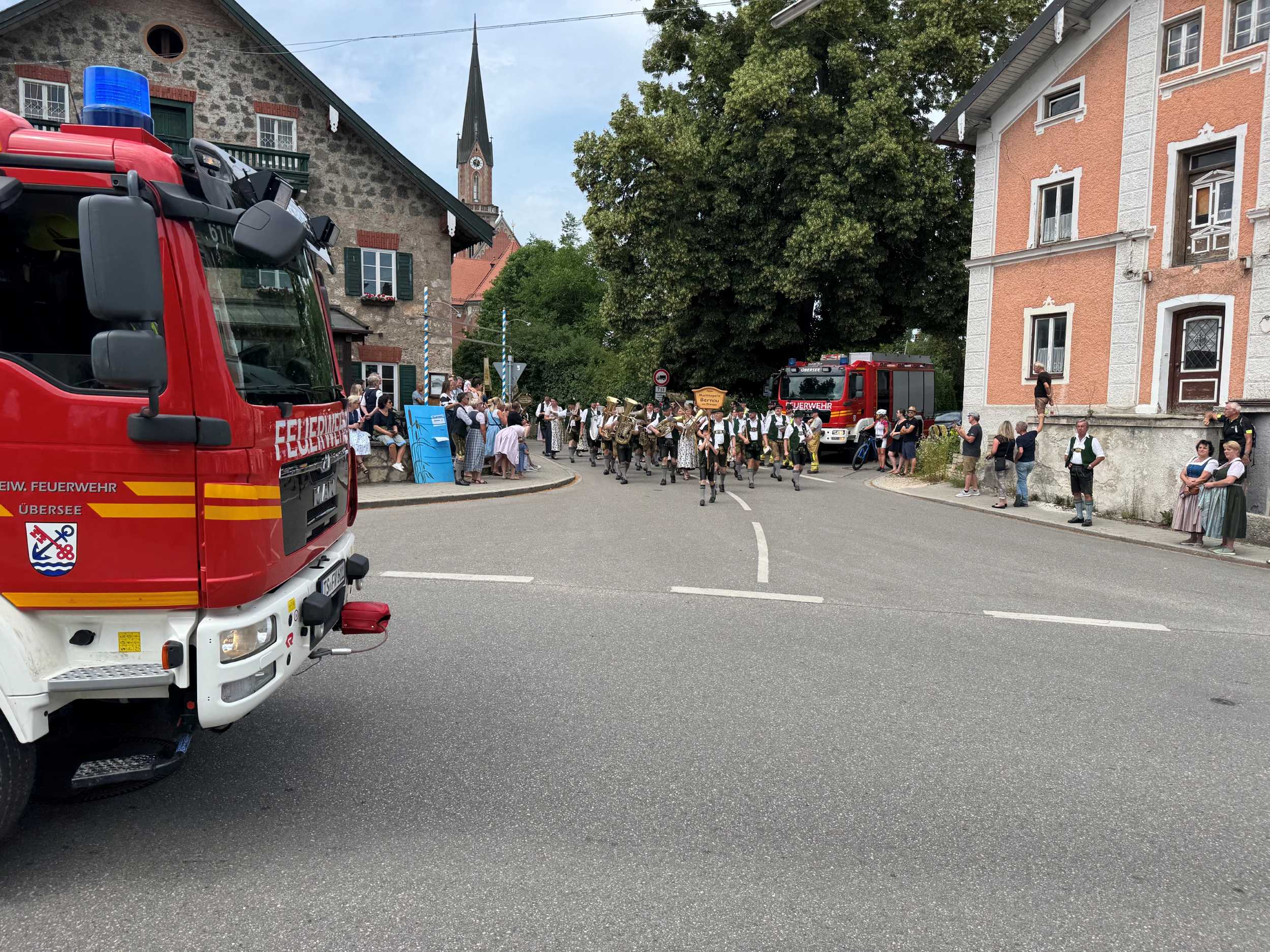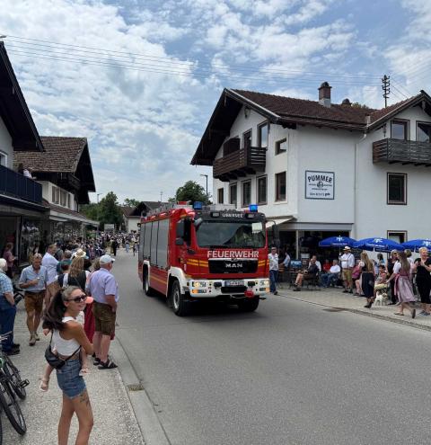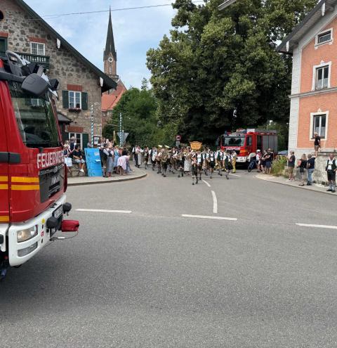 Neben 30 Floriansjüngern aus Übersee unterstützen jeweils weitere neunköpfige Fahrzeugbesatzungen aus Ruhpolding und Reit im Winkl die Einsatzkräfte vor Ort. Das Hauptaugenmerk der Feuerwehr lag in der Verkehrsabsicherung sowie dem Schutz des Festzuges, der durch den Ort führte. Rund 4.500 Musiker aus etwa 50 Kappellen und Zuschauer waren am Festsonntag in Übersee auf den Beinen, um gemeinsam das diesjährige Bezirksmusikfest zu feiern.