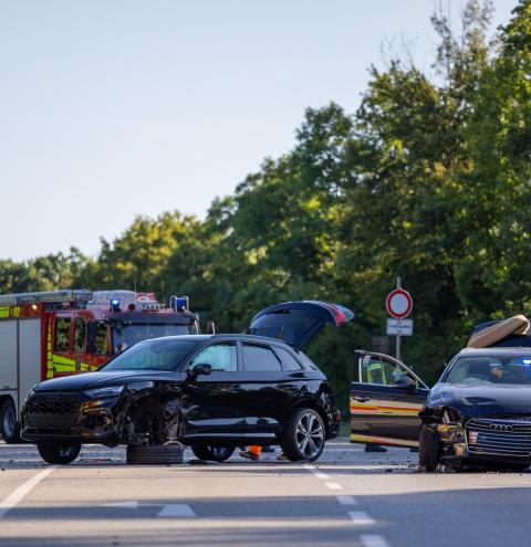 Einen schweren Verkehrsunfall gab es im Kreuzungsbereich der B299 und TS20 zwischen Tacherting und Wiesmühl. Zwei Personen wurden mittelschwer verletzt, ein Rettungshubschrauber war im Einsatz. Nach ersten Erkenntnissen der Polizei wollte ein mit drei Personen besetzter Audi aus der Mühlenstraße kommend die Bundesstraße B299 überqueren, um auf die TS20 zu gelangen. Dabei übersah der Fahrer offenbar einen weiteren Audi, der mit zwei Insassen aus Richtung Tacherting kam und in Richtung Altötting unterwegs war. Im Kreuzungsbereich kam es zu einem heftigen Zusammenstoß. Die beiden Insassen des in Richtung Altötting fahrenden Fahrzeugs erlitten mittelschwere Verletzungen. Sie wurden durch das Bayerische Rote Kreuz, das mit zwei Rettungswagen, dem Rettungshubschrauber Christoph 14 sowie dem Einsatzleiter Rettungsdienst vor Ort war, in umliegende Krankenhäuser gebracht. Die drei Personen im unfallverursachenden Fahrzeug blieben nach ersten Informationen unverletzt. Die Feuerwehren aus Tacherting und Engelsberg waren mit rund 40 Einsatzkräften vor Ort. Sie sicherten den Brandschutz, reinigten die Unfallstelle und richteten eine großräumige Umleitung ein. Die B299 musste für etwa eine Stunde vollständig gesperrt werden, um die Rettungsmaßnahmen und die Unfallaufnahme durchzuführen. Die Polizeiinspektion Trostberg hat die Ermittlungen zum Unfallhergang aufgenommen. Beide Fahrzeuge wurden abgeschleppt.