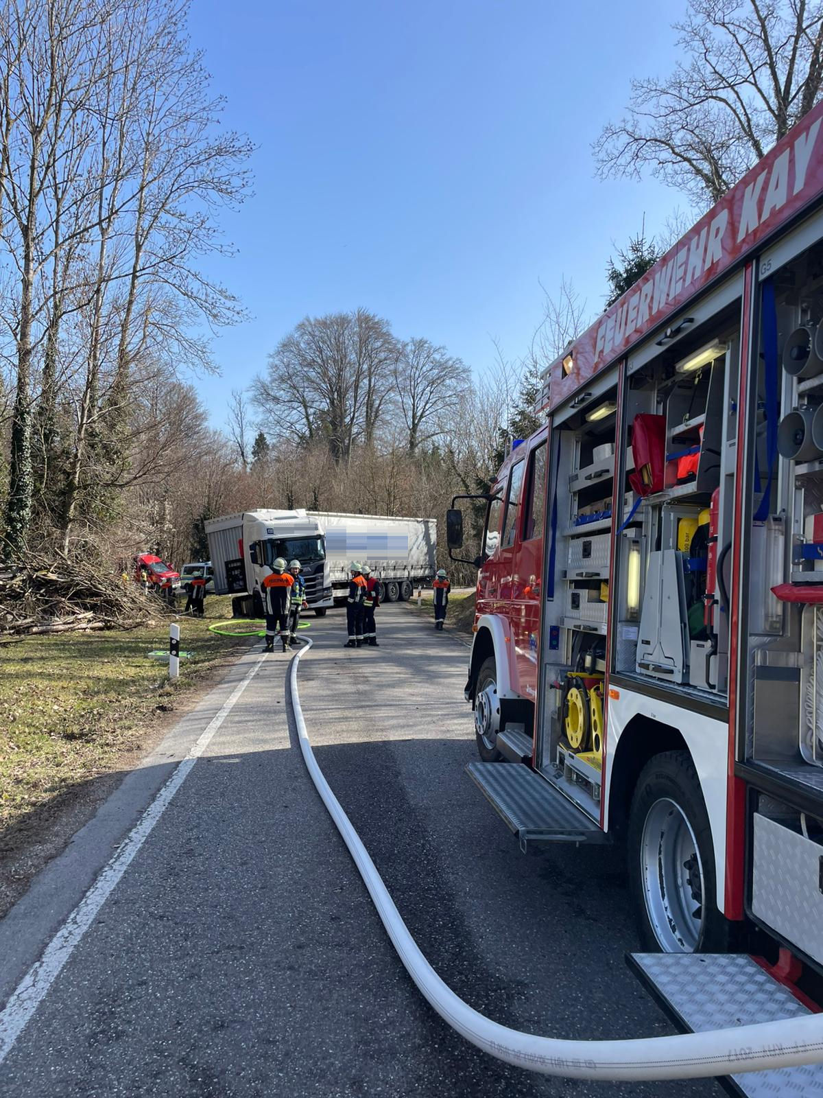 Verkehrsunfall mit LKW – Im Einsatz die Feuerwehren Kay und Kirchheim