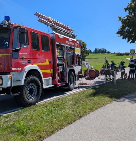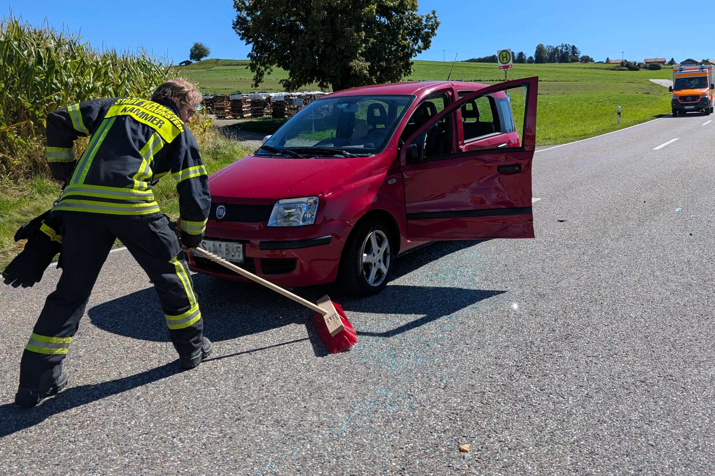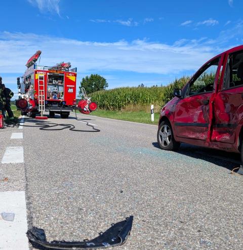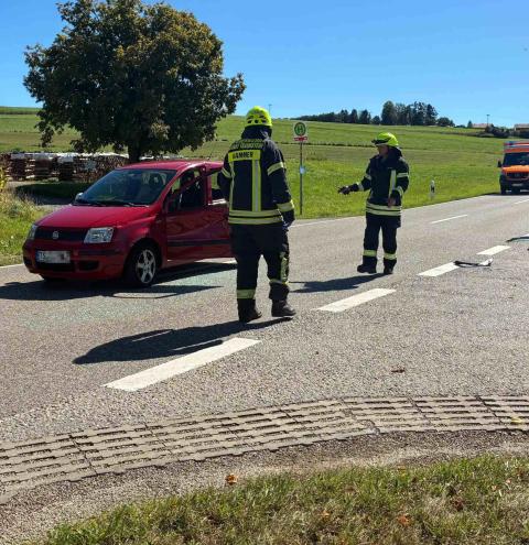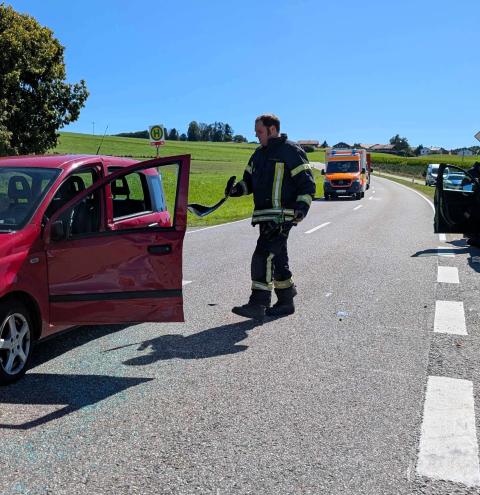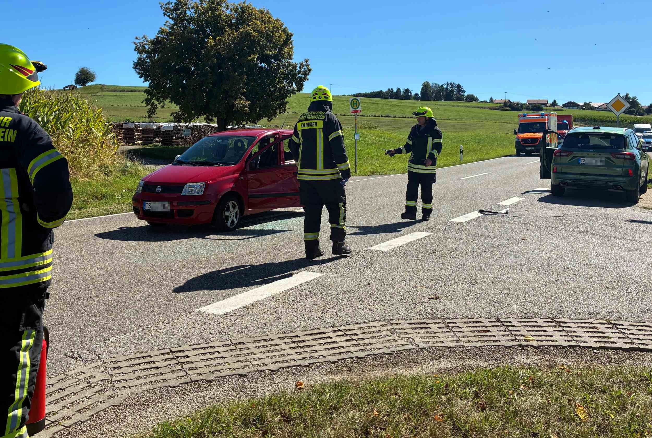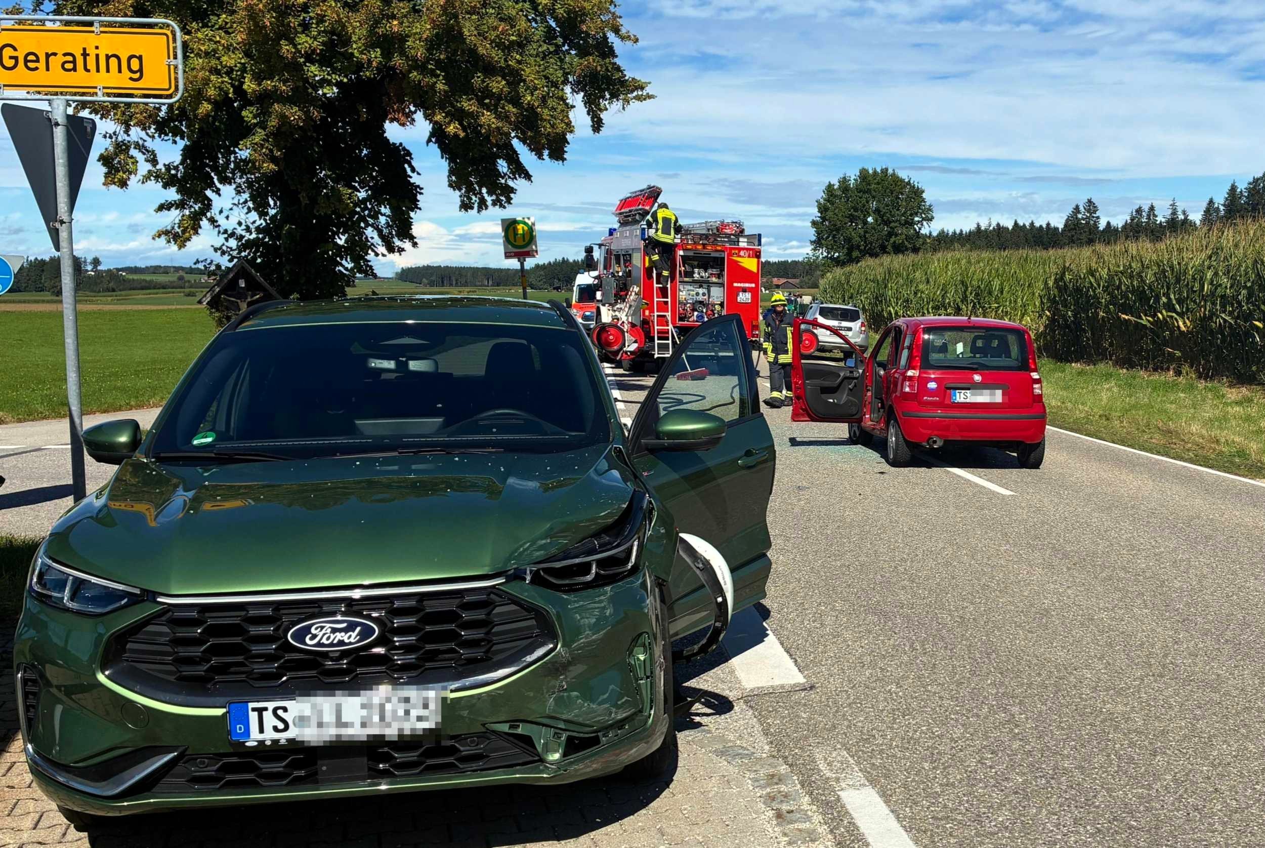 Nach derzeit vorliegenden Erkenntnissen wollte eine Frau mit ihrem roten Fiat aus der untergeordneten Straße von Gerating in die Kreisstraße TS 1 einbiegen und hat dabei den vorfahrtsberechtigen Ford einer Frau übersehen, die mit ihrem Kleinkind in Richtung Kammer unterwegs war. Der Fiat prallte dabei seitlich in die Fahrerseite des Ford. Die ersteintreffenden Einsatzkräfte der Feuerwehr kümmerten sich zunächst um die medizinischen Erstmaßnahmen der Unfallbeteiligten.