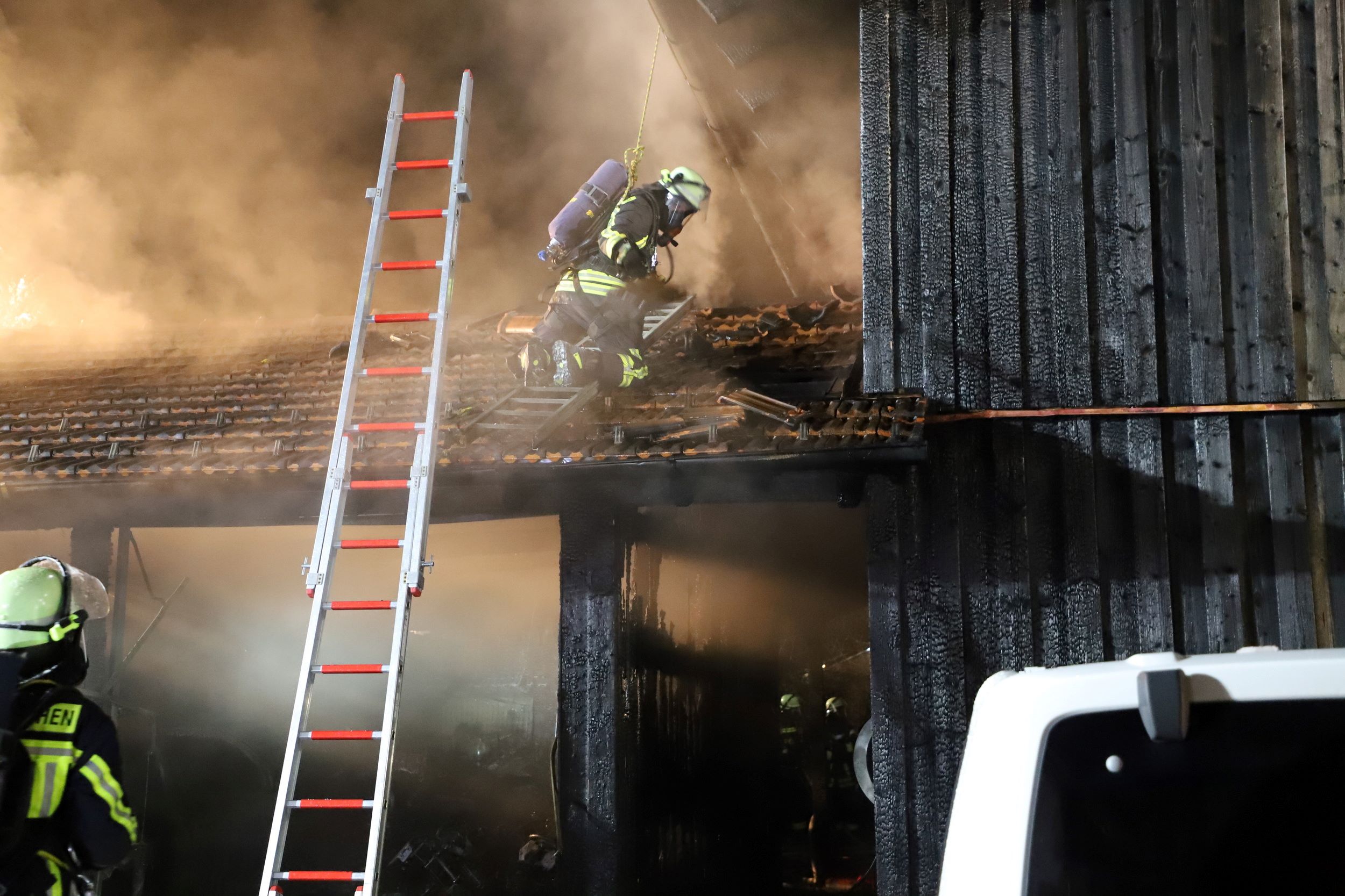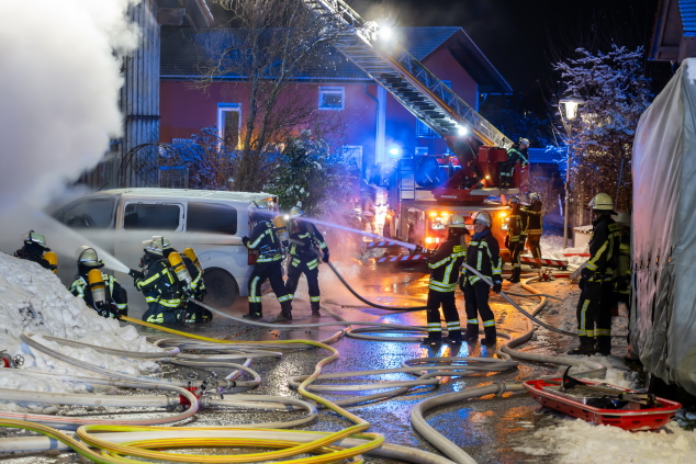Die Feuerwehren Traunwalchen, Traunstein, Matzing, Pierling, Traunreut und Stein wurden in den Zaunäckerweg im Traunwalchner Ortsteil Oderberg alarmiert. Bei Eintreffen der ersten Einsatzkräfte stand dort eine Doppelgarage in Vollbrand und die Flammen haben bereits damit begonnen, auf die Fassade beziehungsweise den Dachstuhl des in Holzständerbau errichteten Wohnhauses über zu greifen. Deshalb wurde die Alarmstufe auf „Großbrandalarm“ erhöht. Ein Mann wurde vorsorglich ins Krankenhaus gebracht, weil er Rauchgase eingeatmet hatte. Die Ursache des Brandes wird derzeit von den Brandfahndern der Kriminalpolizei ermittelt. Die Schadenshöhe dürfte deutlich im sechsstelligen Bereich liegen.
