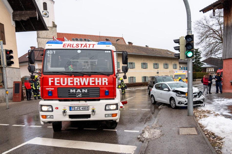 Ein Verkehrsunfall im Kreuzungsbereich ereignete sich im Ortsgebiet von Erlstätt. Der Fahrer eines Kleintransporters wollte von der Raiffeisenstr. kommend, nach rechts in die Grabenstätter Str. abbiegen. Von der gegenüberliegenden Römerstr. befand sich der Lenker eines Dacia ebenfalls im Abbiegevorgang nach links in die Grabenstätter Str. und übersah den Kleintransporter. Es kam zum Zusammenstoß, bei dem erheblicher Schaden an beiden PKW entstand. Beide Fahrzeuglenker blieben aber unverletzt. Das BRK, welches mit einem Rettungswagen vor Ort war, nahm nur einen Unfallbeteiligten in Augenschein. Dieser konnte aber vor Ort bleiben. Die Feuerwehr aus Erlstätt war mit 25 Einsatzkräften und 4 Fahrzeugen zur Verkehrsregelung und zur Säuberung der Unfallstelle vor Ort. Die Polizei aus Traunstein hat den Unfall aufgenommen. Beide Fahrzeuge wurden abgeschleppt.